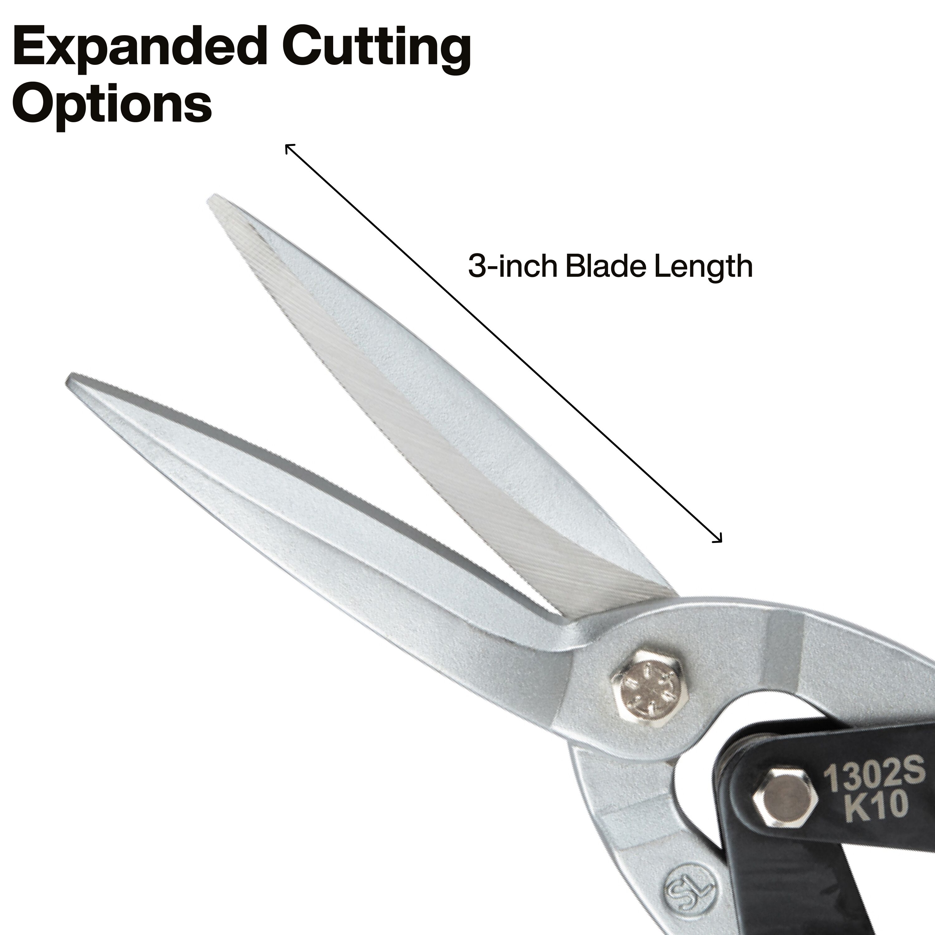 - Aviation Snips with 3-Inch blade length for expanded cutting options