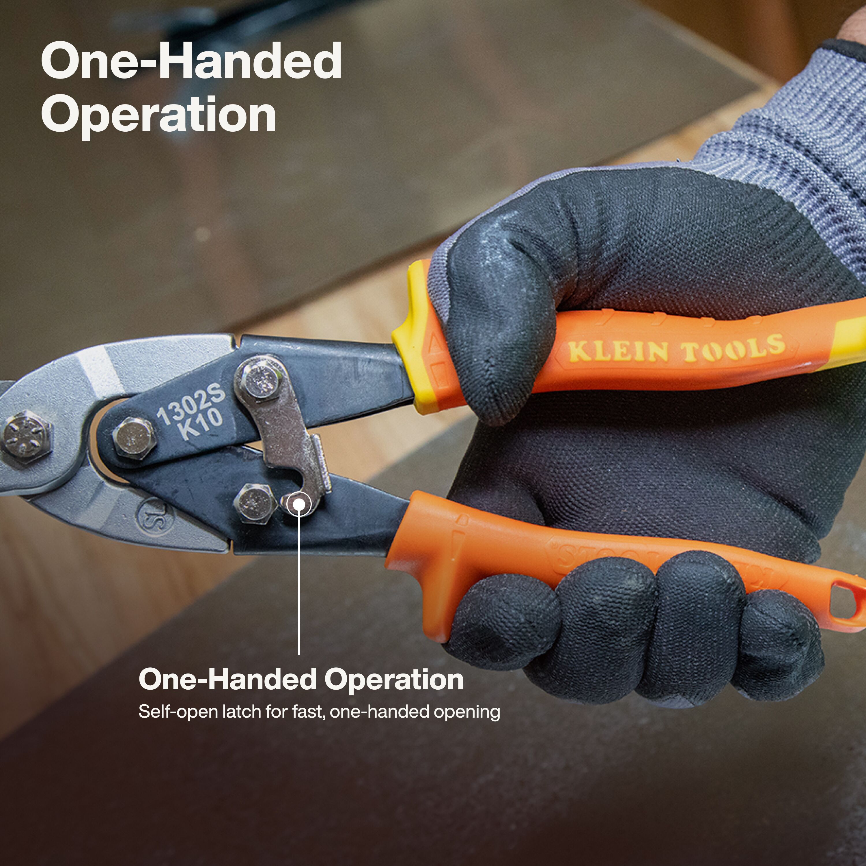 Cut and trim sheet metal more efficiently with the Klein Tools long-nose, straight cutting Aviation Snips. Snip blades are made of forged, heat-treated steel for superior strength and durability. The self-open latch allows opening of tool with one handed operation. Aviation snips are color-coded and feature comfortable contoured grips.