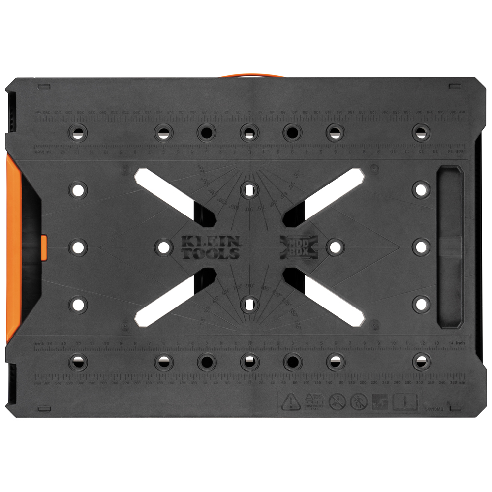 The MODbox™ Folding Work Bench is a versatile, compact, portable workstation. The large work surface includes holes to secure materials in place with clamps. MODbox™ accessories easily attach to rails on both ends, allowing for convenient storage of parts and tools. Designed to quickly open and close with the push of a button and push/pull of the handle, the work bench easily maneuvers around a job site or garage and easily folds for compact storage.