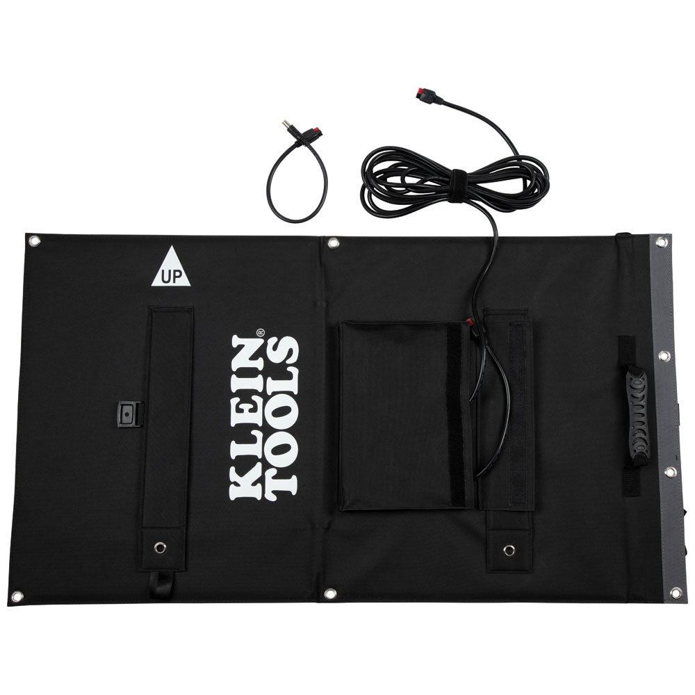 - The flexible cable easily stores in the pouch of Klein Tools Solar Panel
