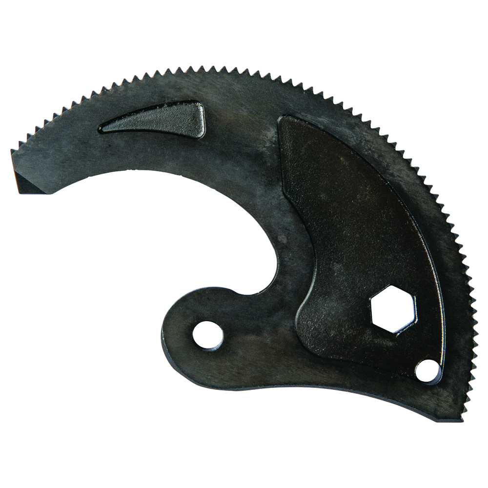 Replacement blade set for Klein's 63607 (2017 Edition) Ratcheting ACSR Cable Cutter. Hardened steel blades cut up to 336 MCM ACSR, 400 MCM Copper and 600 MCM Aluminum. Set includes moveable cutting blade, fulcrum screw, lock nut for fulcrum screw.