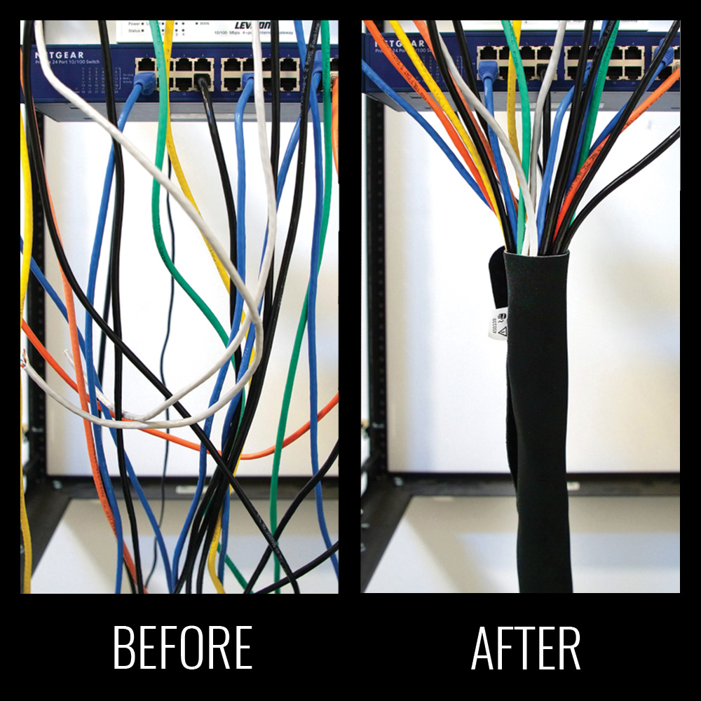 - Cable Management Sleeves help organize and hide cables at the home, office or job site