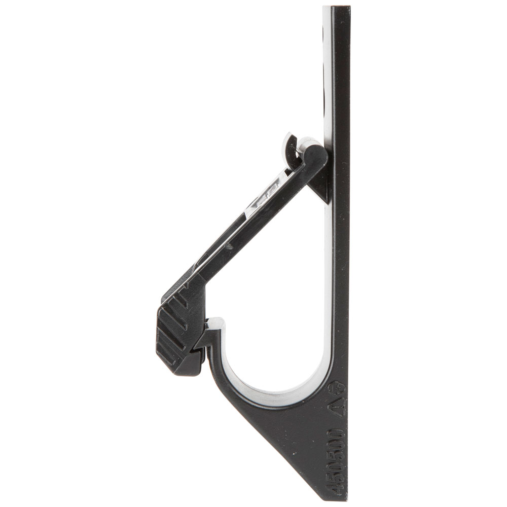 Klein J-Hooks provide an easy to install, non-continuous cable support for routing all types of low voltage cables. A great alternative to metal, the plastic J-Hooks have smooth, rounded edges to allow cables to easily traverse without damage to cable jackets and the lockable latch secures cables during pulls. The patent pending, pilot pins on the side of the J-Hooks help center screws for mounting. The J-Hooks are plenum rated for use in air-handling spaces and are UL2043 certified.