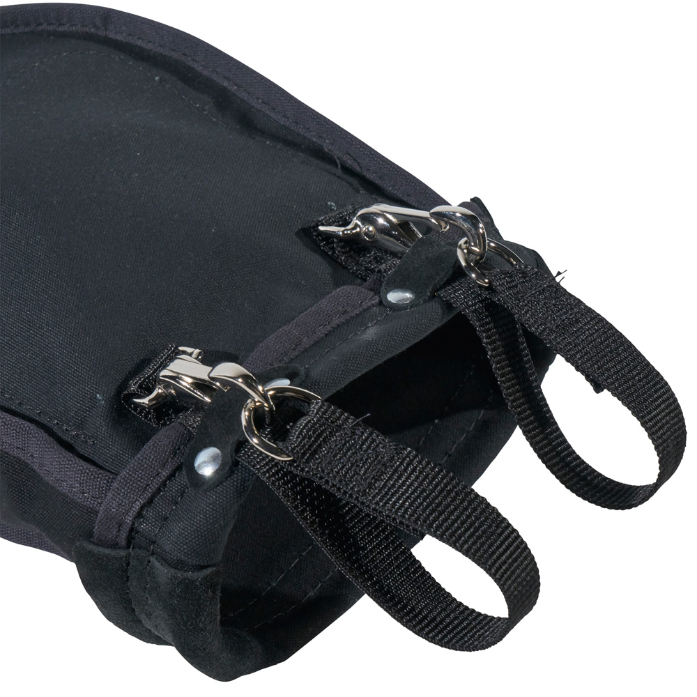 Klein Tools' Nut and Bolt Pouch is reinforced with leather and rope, which also keeps the shape of the pouch opening. This tool bag has an interior pocket, and metal snaps on the loops for belts up to 3-Inch wide. At 9 x 3.5 x 10-Inch, it is an innovative tool handling solution.