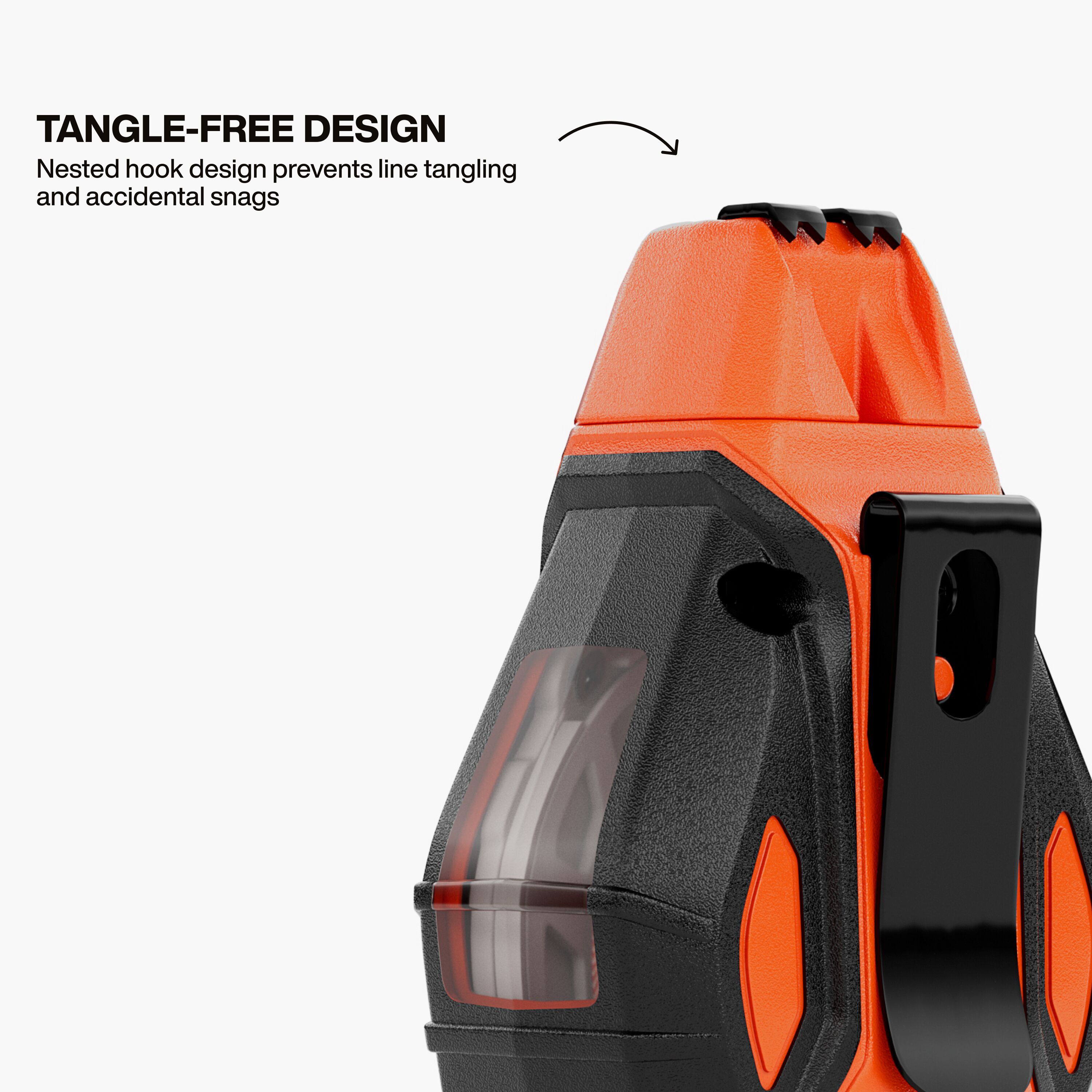 Six Times as Fast as 1:1 Gears; Removable Belt Clip; Window to Monitor Chalk Levels; Twist-lock Top to Prevent Spilling; High Impact ABS Case with Rubber Grips; Lanyard Hole; Chalk Line Quick-Release Button
