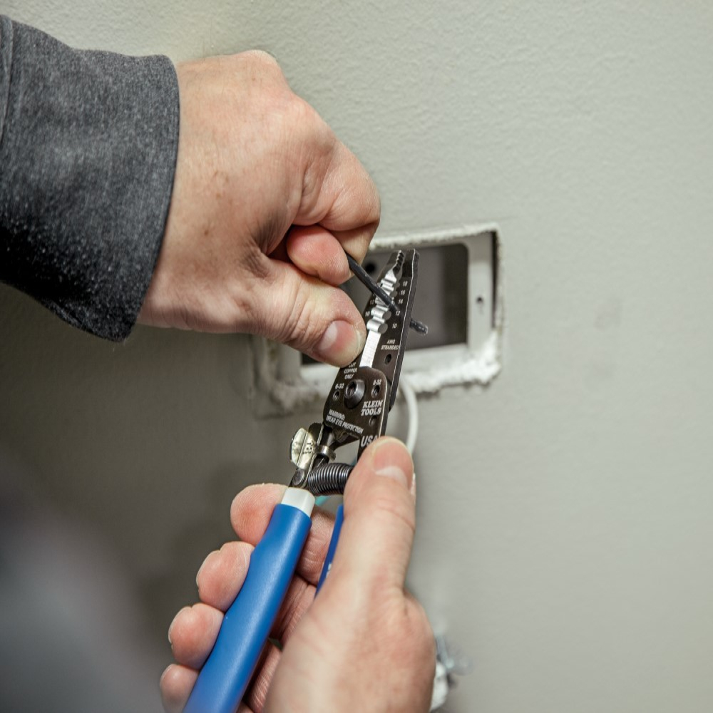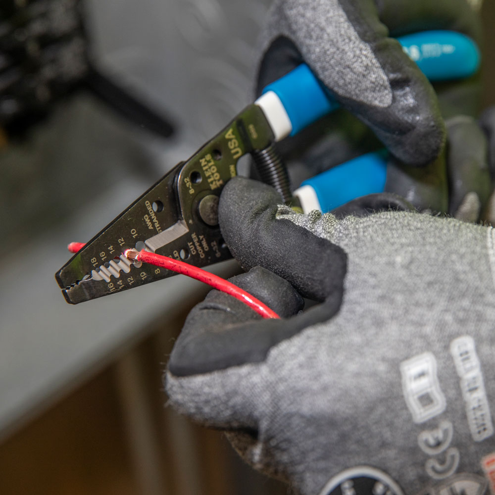 The Klein-Kurve® Wire Stripper/Cutter strips, cuts and loops 8-16 AWG solid and 10-18 AWG stranded wire. Precision, shear-type blades provide clean cuts on both solid and stranded copper wire. The strong-gripping serrated nose easily bends, shapes and pulls wire. For convenience, we have easy-to-read markings on both sides as well as doubled-dipped grips for comfort.
