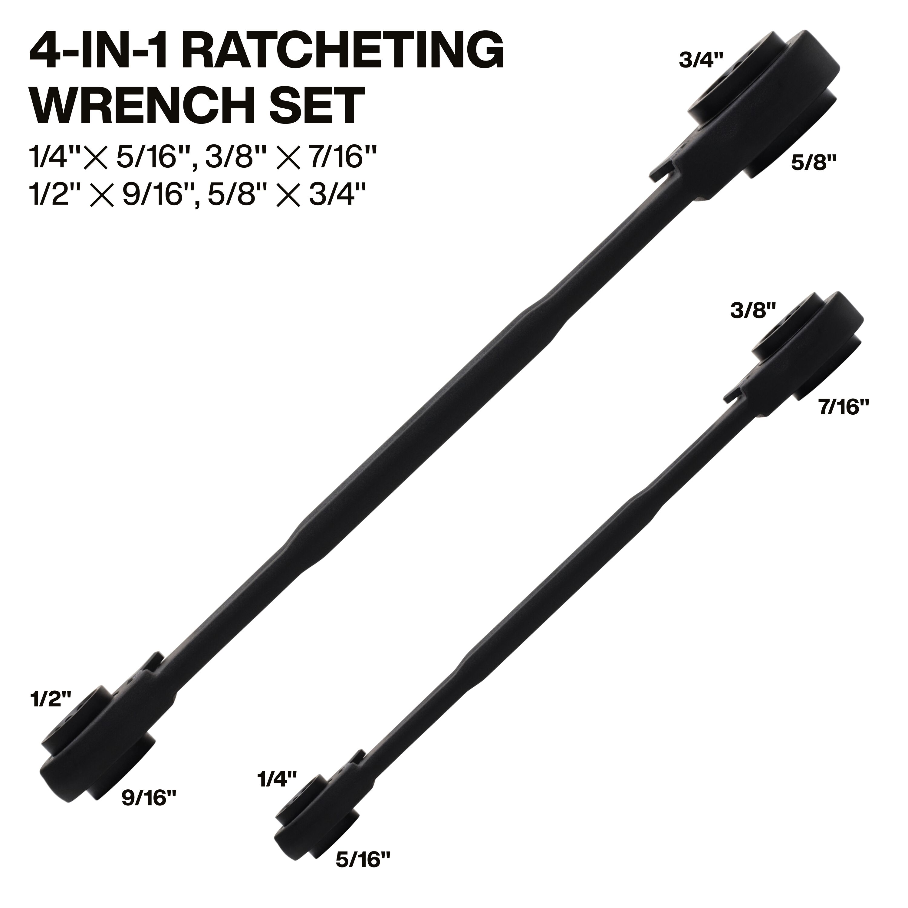 4-in-1 Ratcheting Wrench Set, SAE, 2-Piece