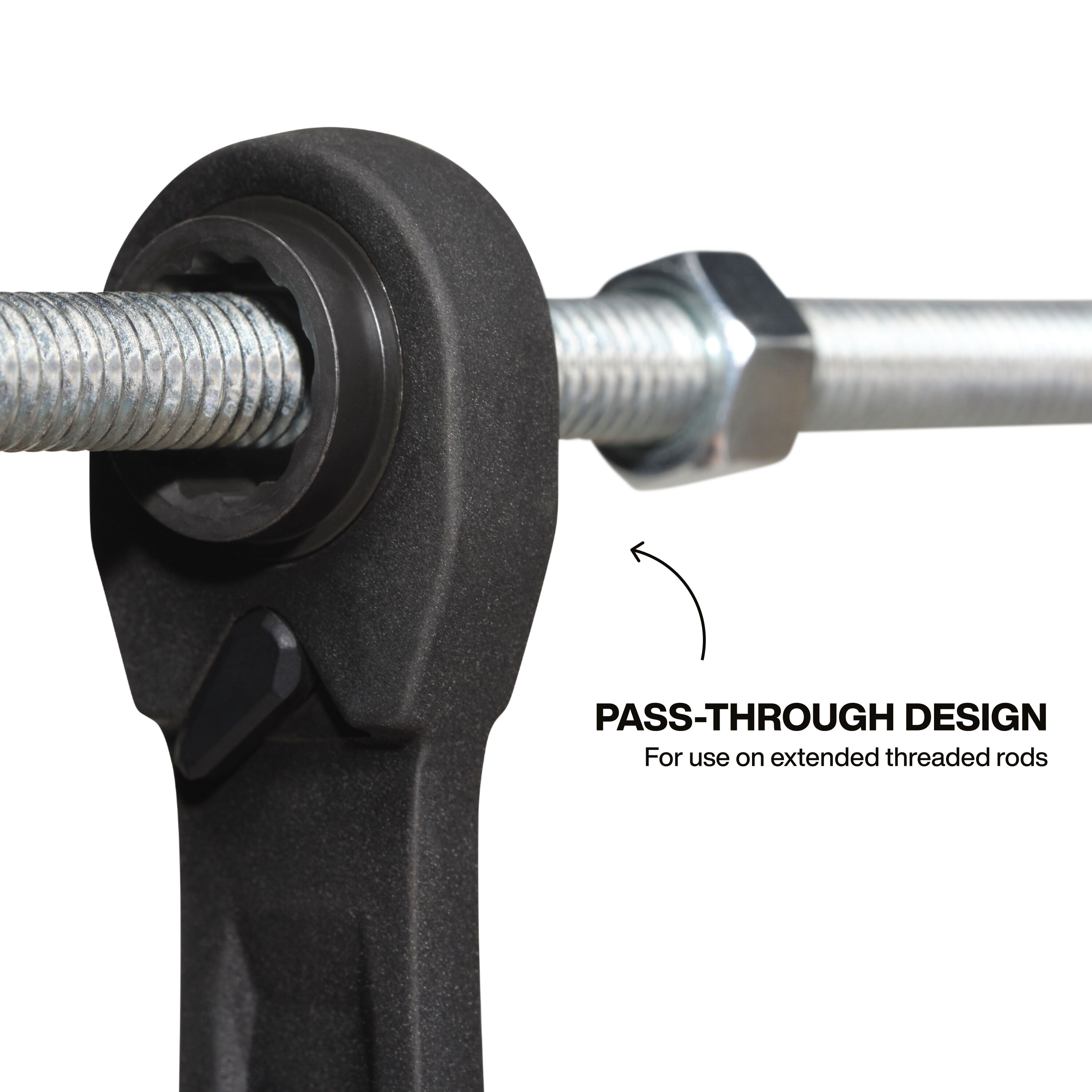 - Pass-through design accommodates longer threaded rods and bolts for enhanced versatility in various applications
