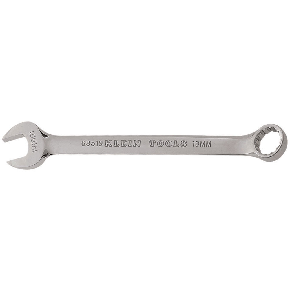 The Klein Tools 19 mm Metric Combination Wrench is forged from the highest quality alloy steel. The open end is offset at the standard 15 degree angle for confined working areas. The box end is also offset by 15 degrees which provides better clearance over obstructions.