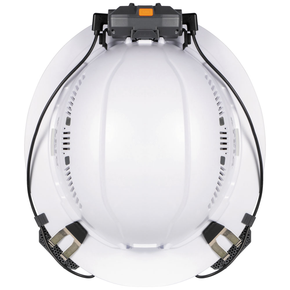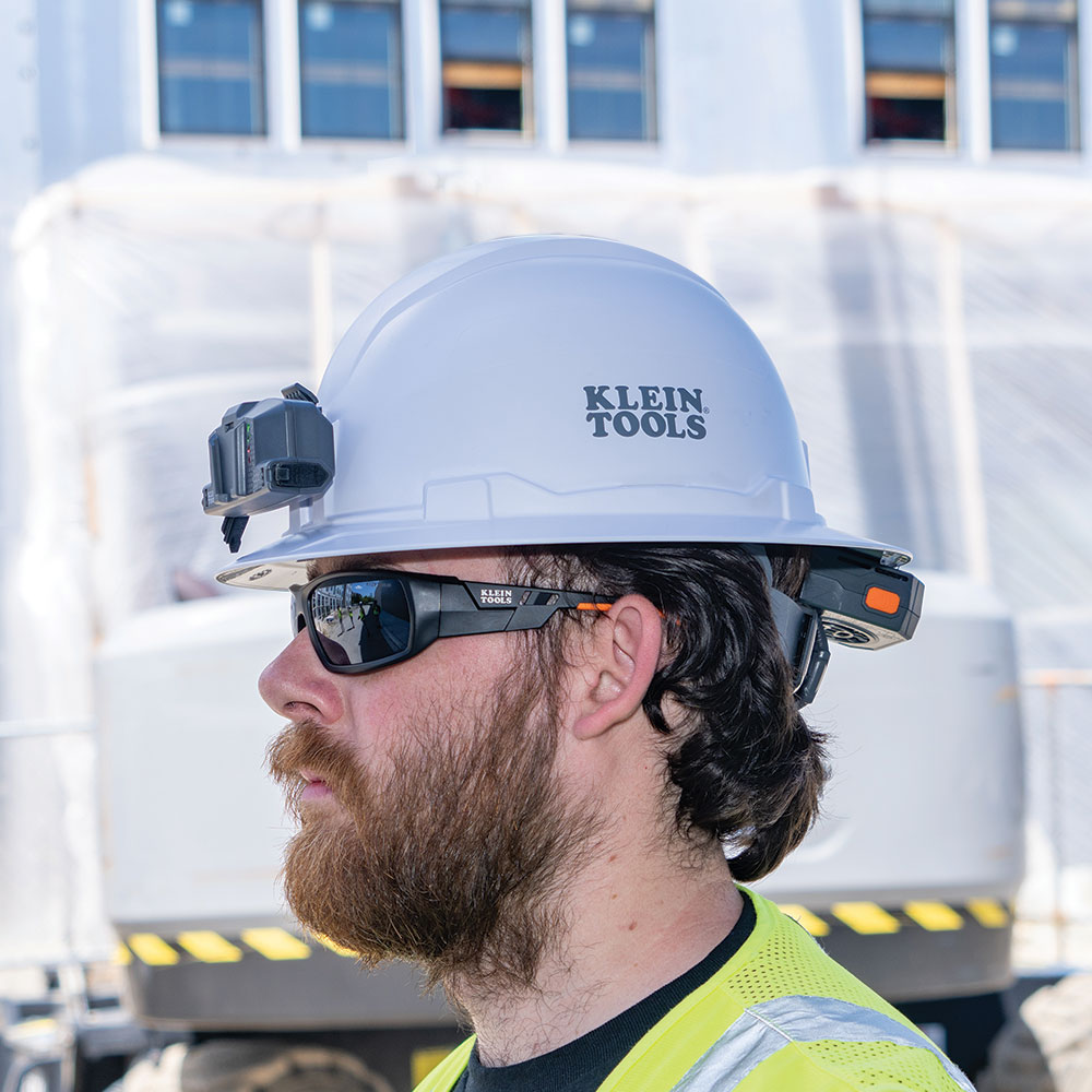• Dual-mount strap and hinged bracket included for use on hard hats or safety helmets without Klein Tools' front/back mount