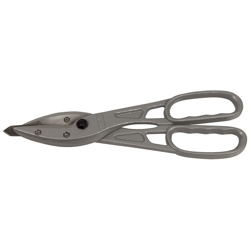 With the Klein Tools Tinner Snips you can cut 3-1/2-Inch straight cuts and wide curves. This snip has a 6-Inch angled, hollow ground cutting edge. The blade is constructed from high-carbon steel and the handle is made from magnesium.