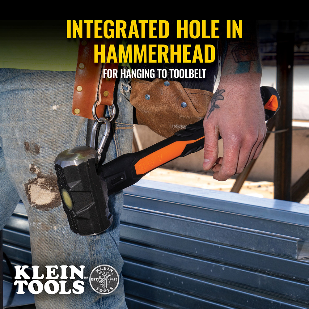 Klein Tools' Sledge Hammer is proudly forged and assembled in the USA. The comfortable anti-slip, shock reducing grip absorbs the vibration of impact and keeps hand firmly in place. Sledge Hammer also features an opening on the hammerhead for easy carabiner attachment to secure on belts or tool organizers.
