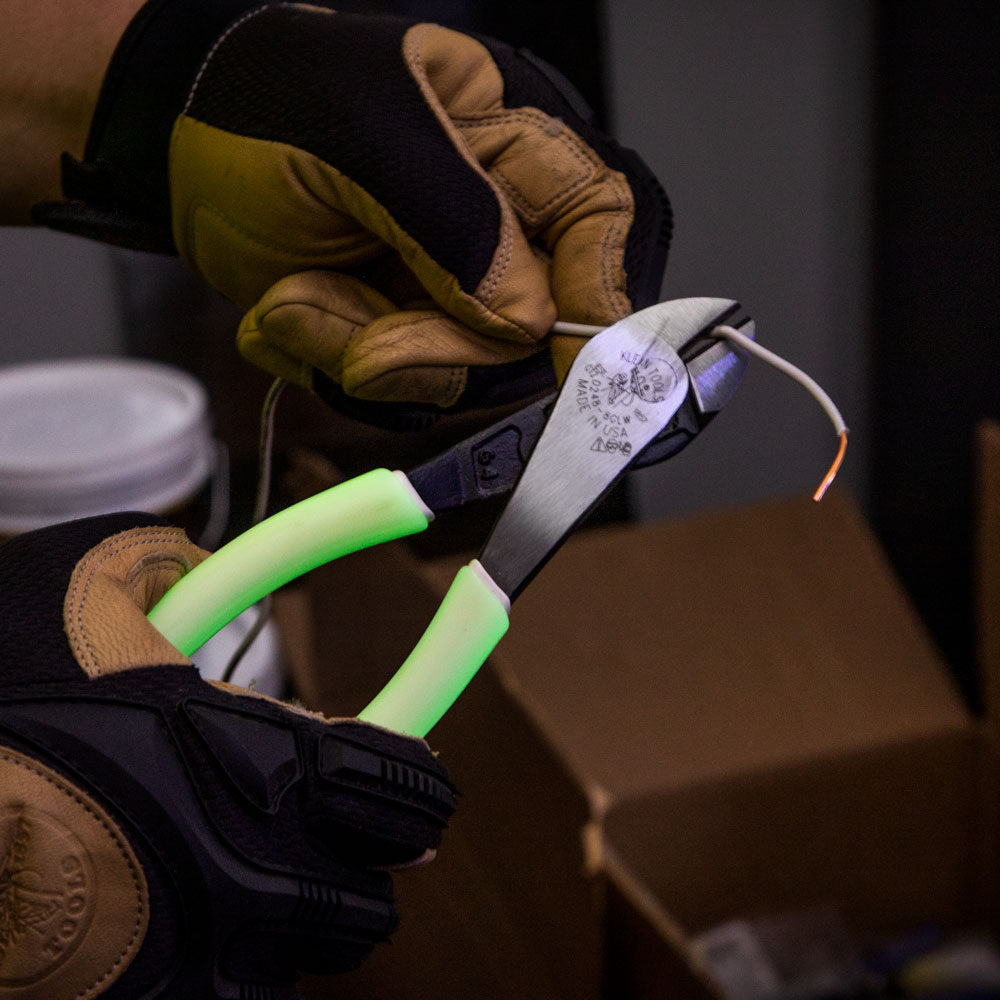 - Diagonal Cutters with glow in the dark grips to easily locate your tool in dark or low lit areas