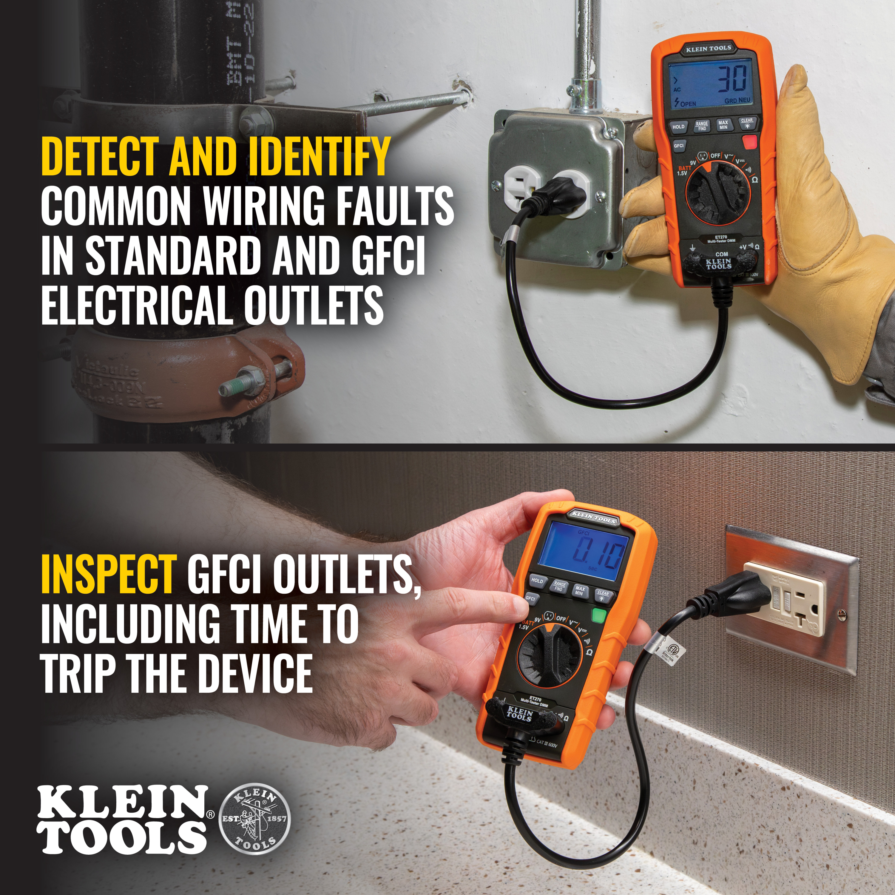 Testing and Measuring Voltage; Detects and Identifies Common Wiring Problems in GFCI Receptacles