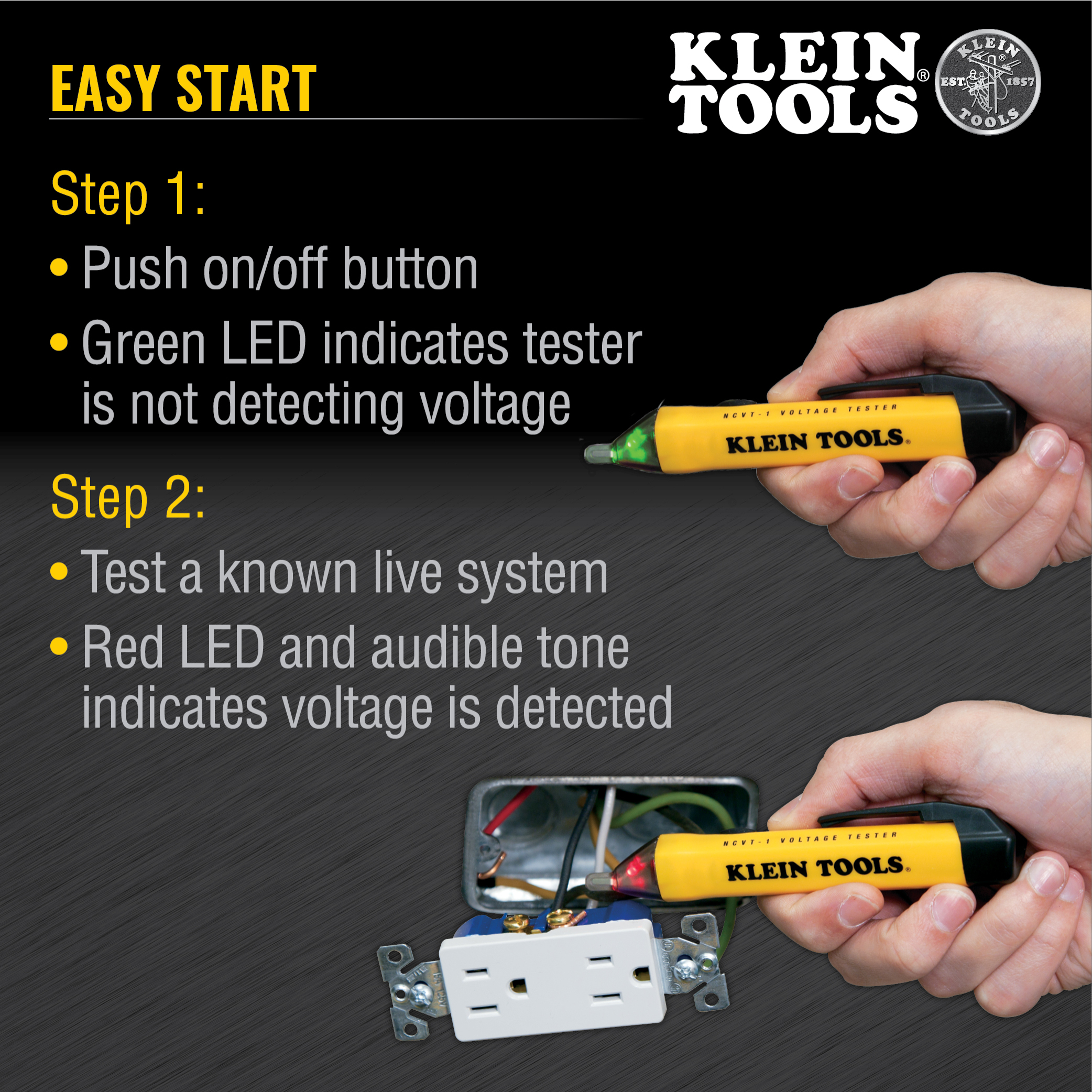 - Non-Contact Voltage Tester NCVT-1 has a bright green LED to indicate the tester is working; it changes to red and warning tones sound when voltage is detected