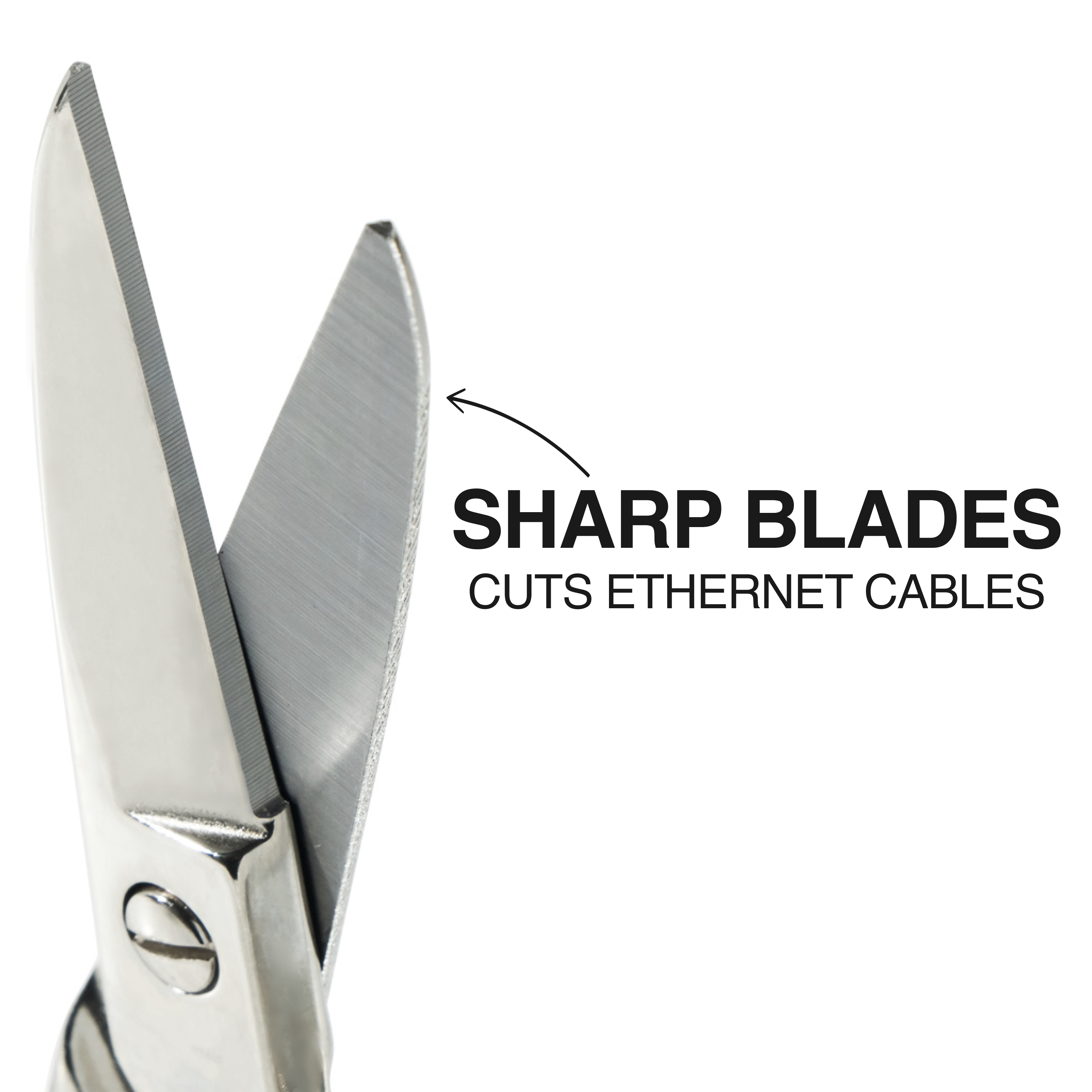 - Electrician Scissors made with tough, tempered steel for long-lasting durability and finished with a corrosion-resistant nickel plating