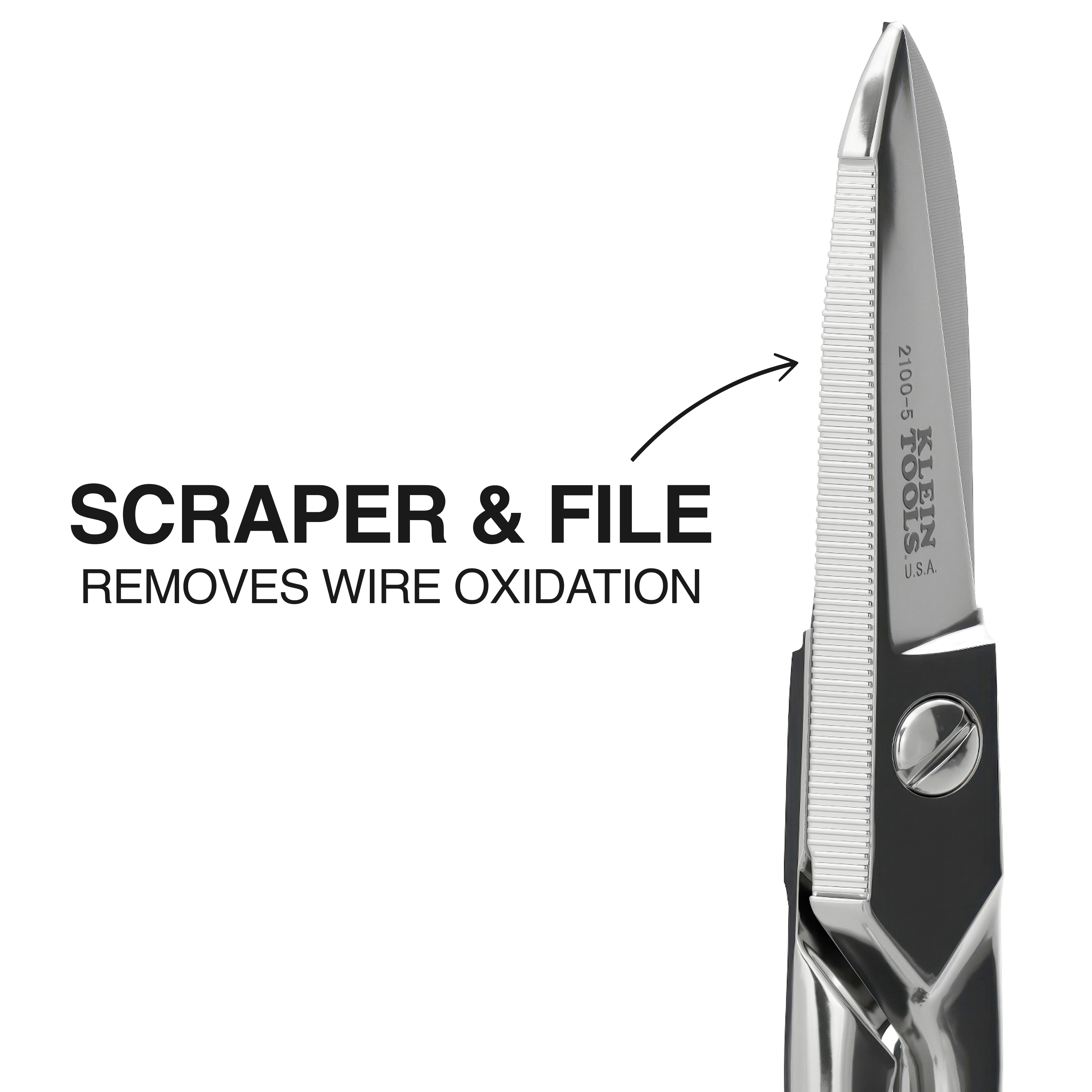 - Scraper and file on both blades for cleaning oxidation from copper wires