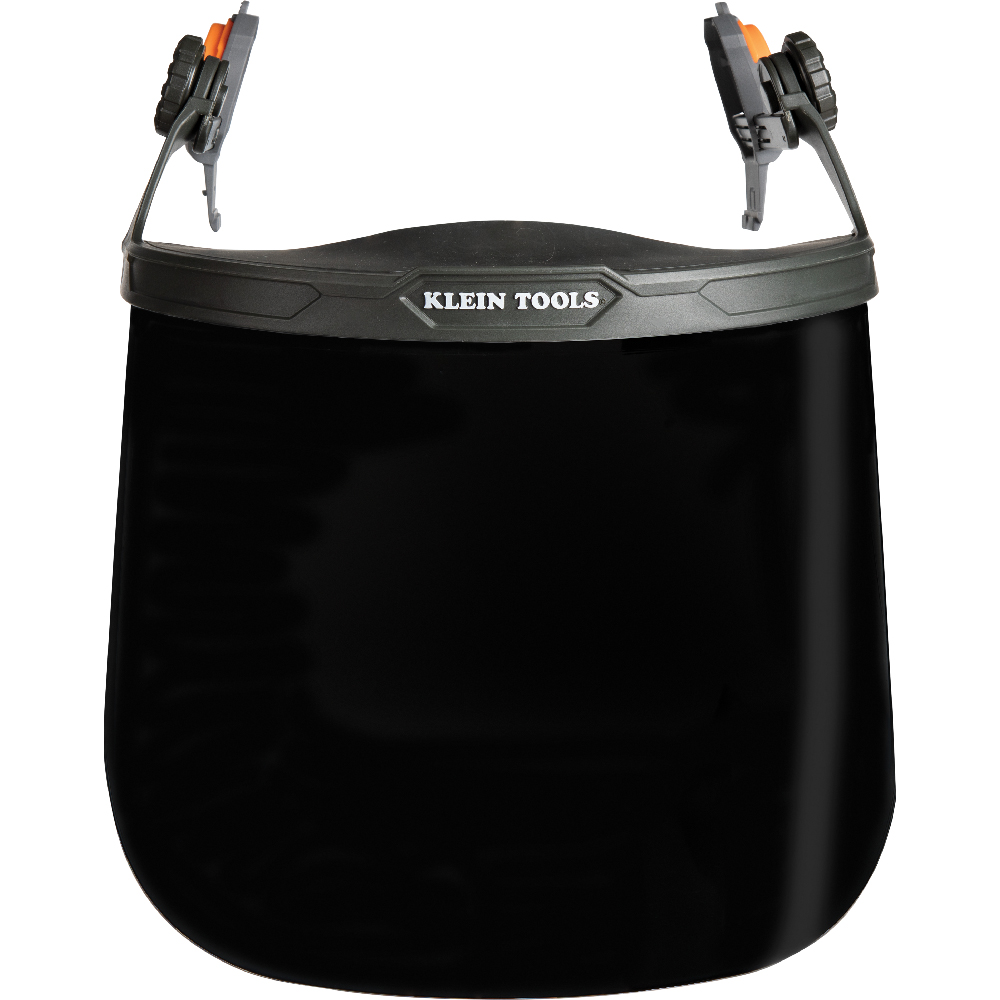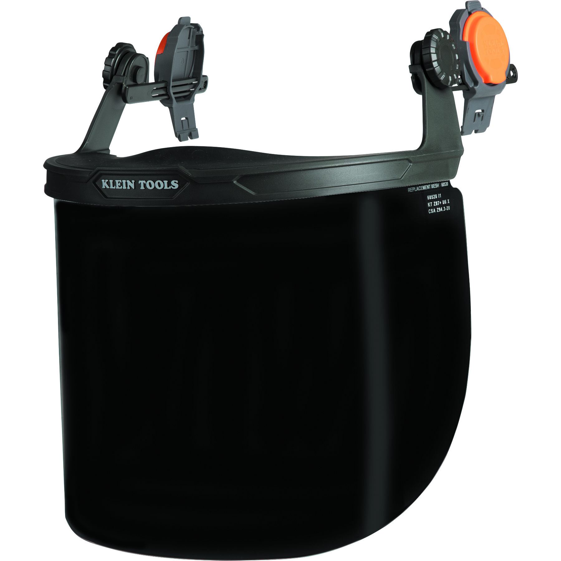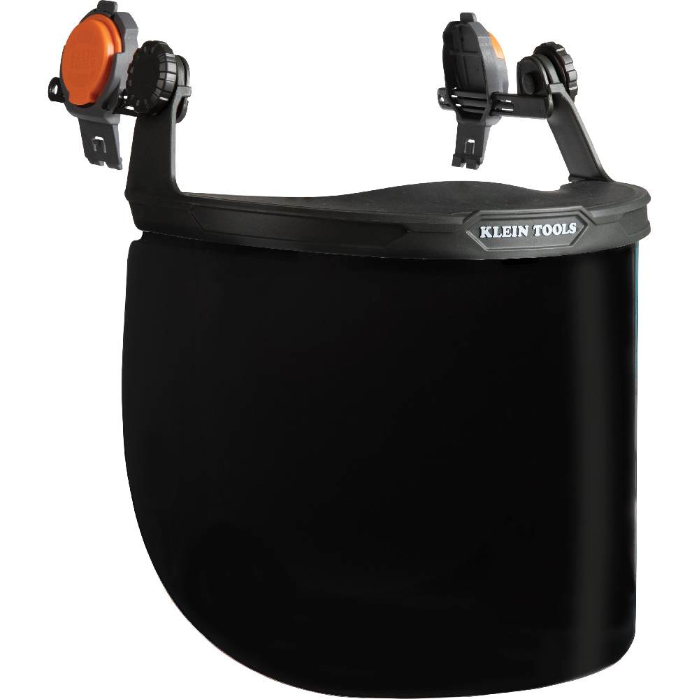 Klein Tools Face Shields offer a combination of safety, comfort, fit and convenience. High-impact tested with proper coverage to protect from small to large objects. Lightweight construction, low profile designs (clear, tinted and mesh models) specifically fit safety helmets, cap style and full brim hard hats. Secure attachment to universal mounts; adjustable modular design allows for use with hearing protection and headlamps. High-optical quality; anti-fog and scratch resistant coatings ensure enhanced visibility.