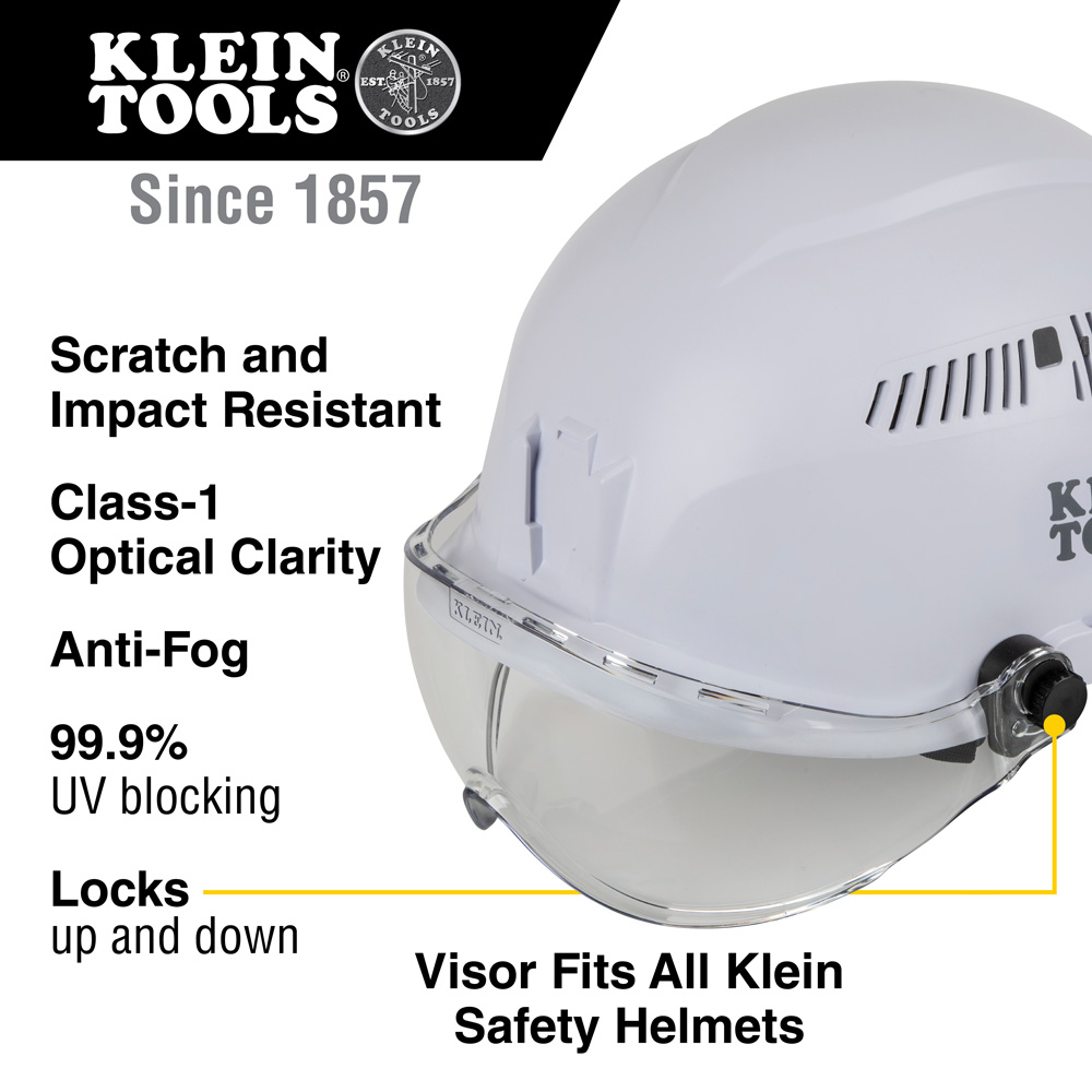 - NOTE: This visor is designed ONLY to fit Klein Tools Safety Helmets (Cat. No. 60145, 60146, 60147, 60148, 60149, 60150)