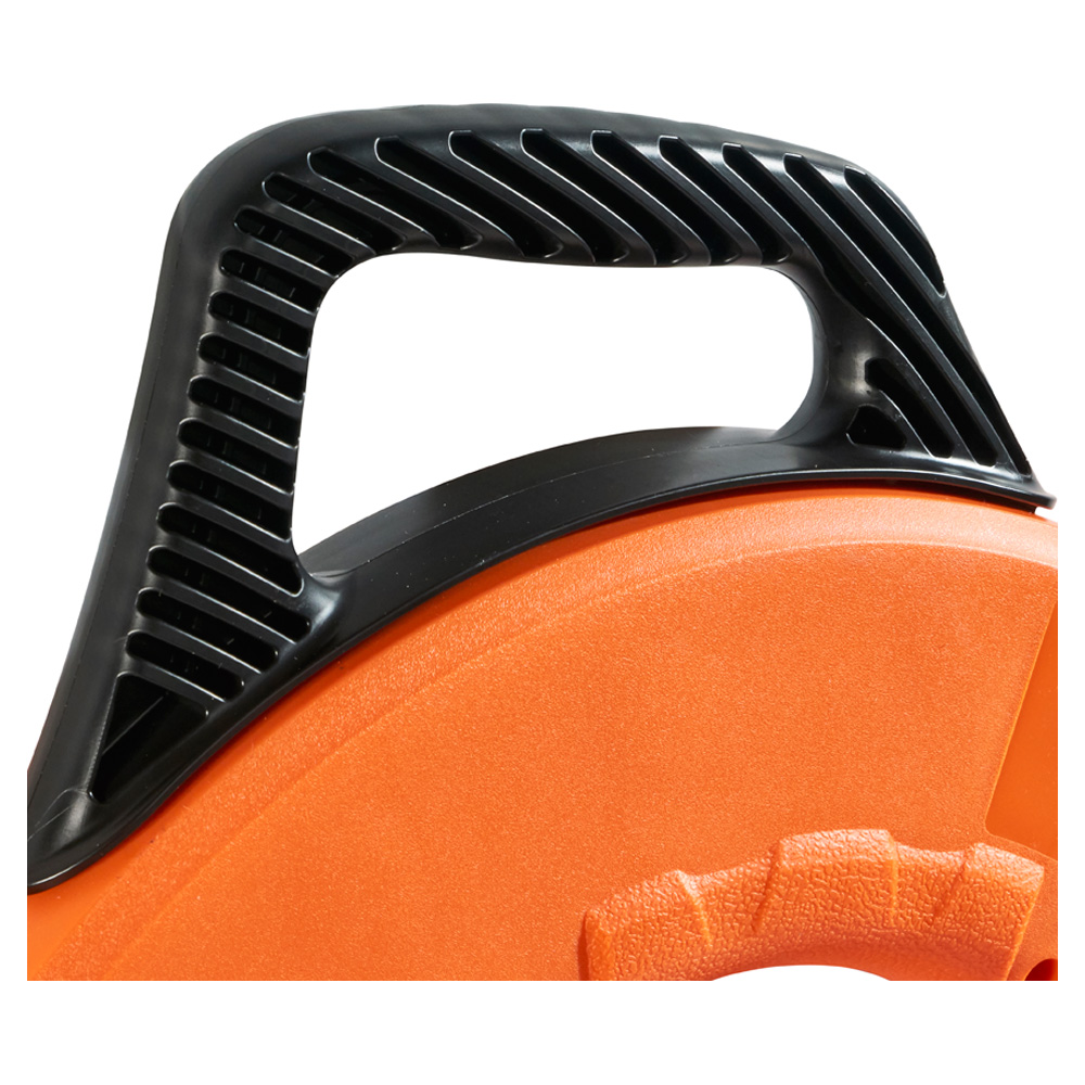• Unique sloped handle optimizes the position of your hand for quick hand-over-hand rewinds and allows a more level payout of tape on the backswing while feeding conduit