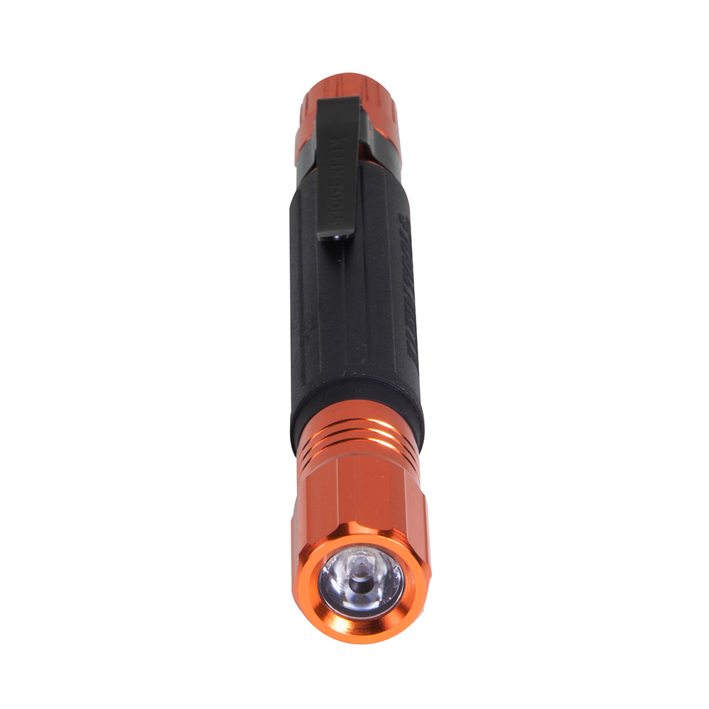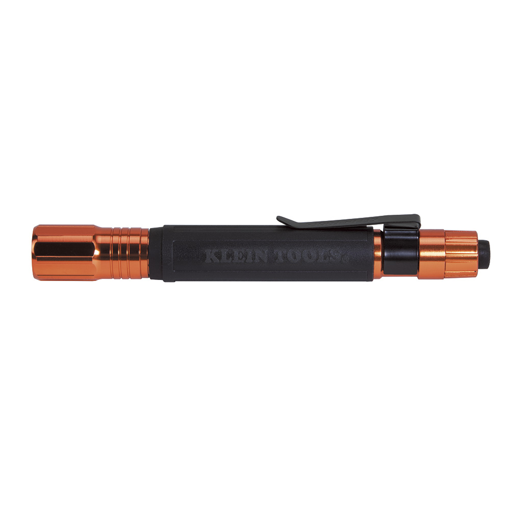 Klein Tools lights are designed to make life brighter and easier, with leading-edge solutions for illumination on and off the job site. This Penlight has an orange aluminum body with a Cushion-Grip™ handle for a safe and comfortable hold. A clip allows the light to be attached to a shirt or pocket for hands-free usage. The penlight has both soft-on and click-on features, depending on the type of light needed.