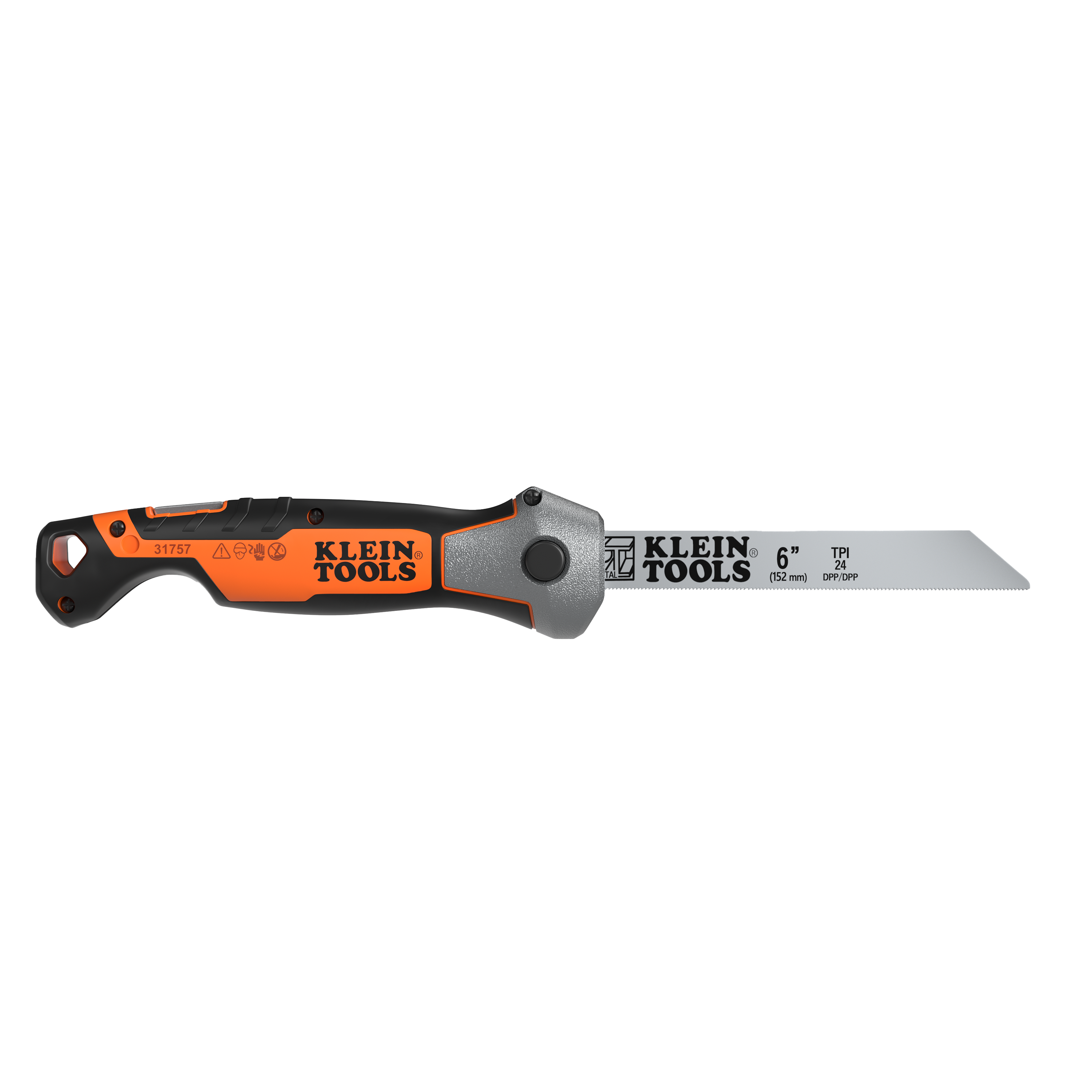 The Klein Tools Folding Multi-Purpose Jab Saw is a versatile and compact tool for professionals and DIYers. It features reciprocating saw-compatible blades that can be swapped quickly with a tool-free blade lock. Dual locking positions allow the blade to secure at 180-Degree for full reach or 125-Degree for tight spaces. The handle folds with blades up to 6-Inch for easy storage and transport, making it perfect for cutting in hard-to-reach areas with precision and convenience.