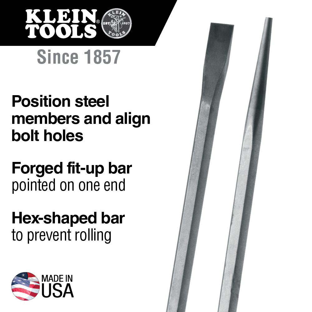 Klein Tools Hex Bars are designed so they provide extra-leverage when positioning steel members and aligning bolt holes. Hex bars are made of hardened steel for durability and long life. These forged fit-up bars are pointed on one end for versatility.