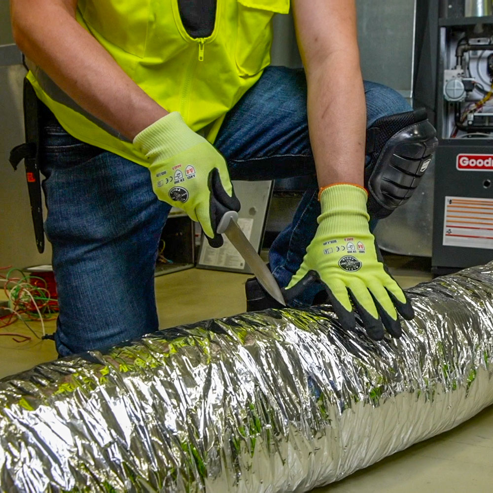 - Cuts duct board and flexible duct
