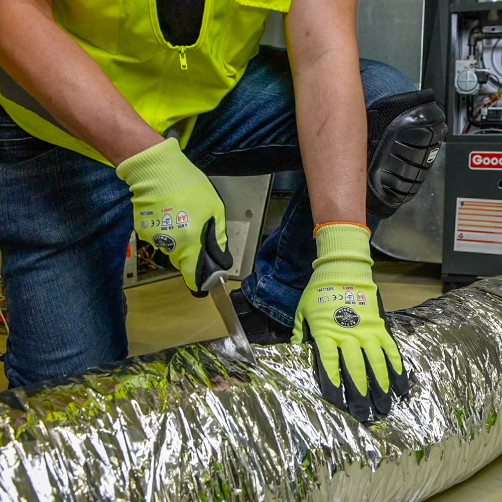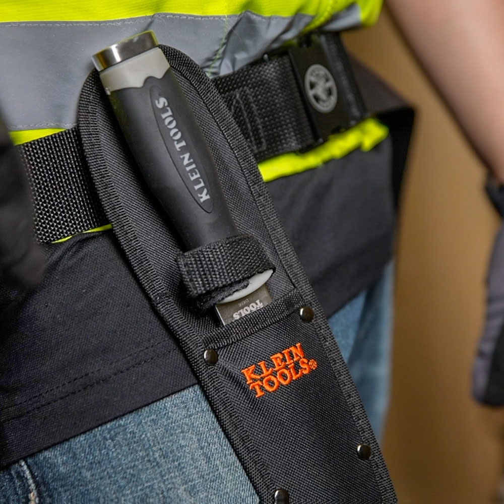 Klein Tools Serrated Duct Knife is perfect for cutting duct board and flexible duct. The stainless steel blade is dual-sided: 1-serrated and 1-regular for added versatility. Knife comes with a puncture resistant nylon sheath.