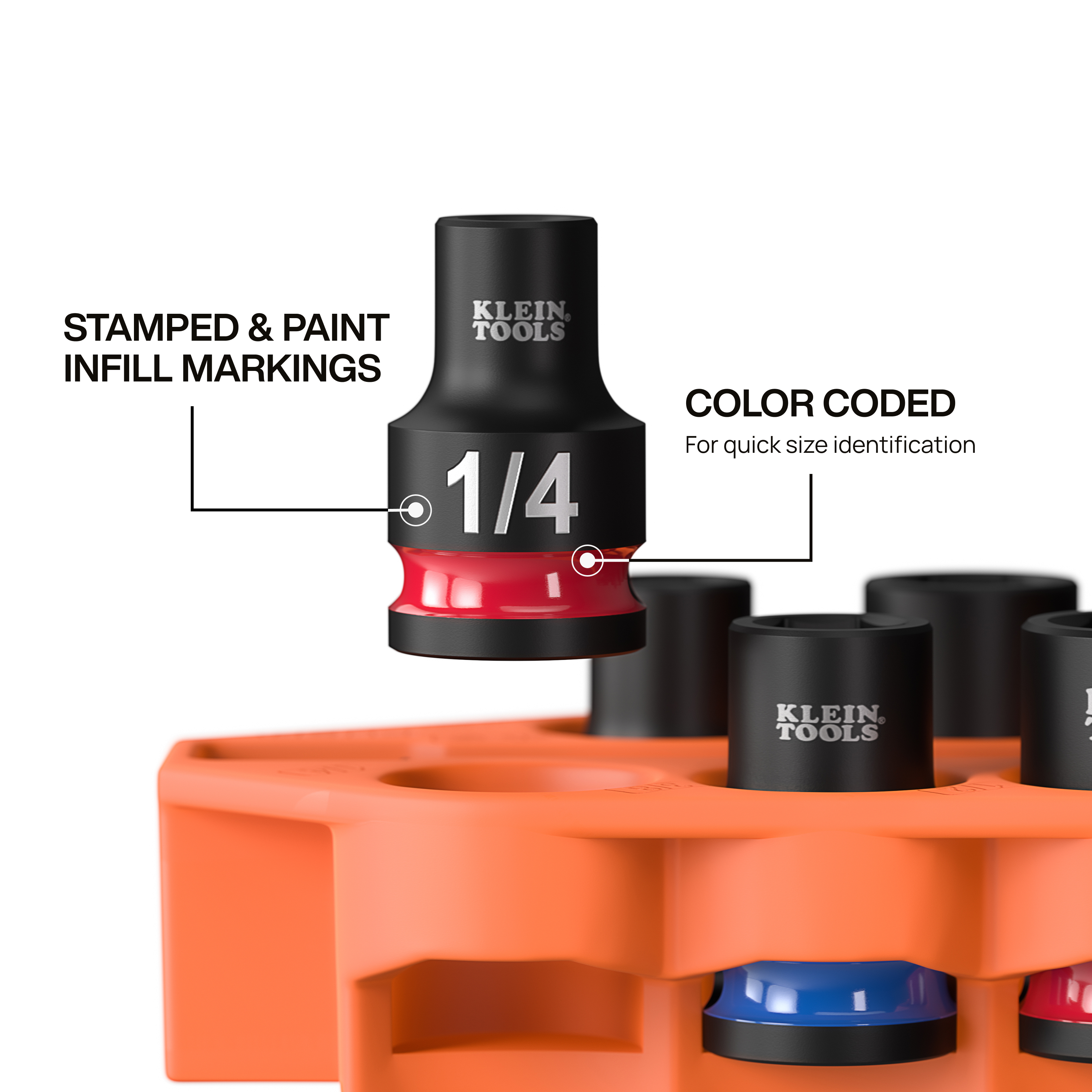 - Industry-standard color-coded painted rings and bold stamped size markings deliver lasting durability and instant socket size identification