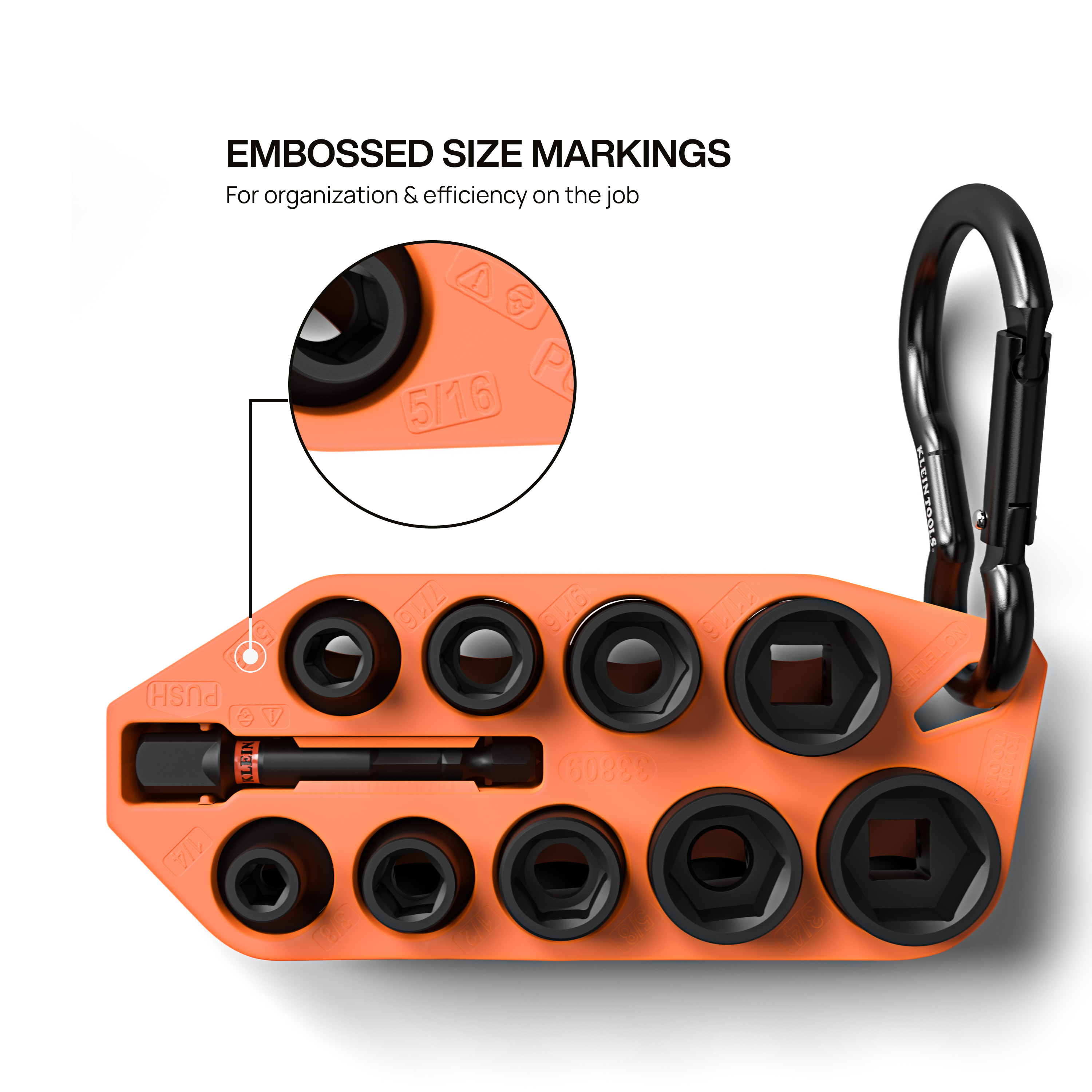 - Convenient carabiner attachment lets you secure the socket sleeve to backpacks, tool bags, or belts for instant access and improved job site productivity