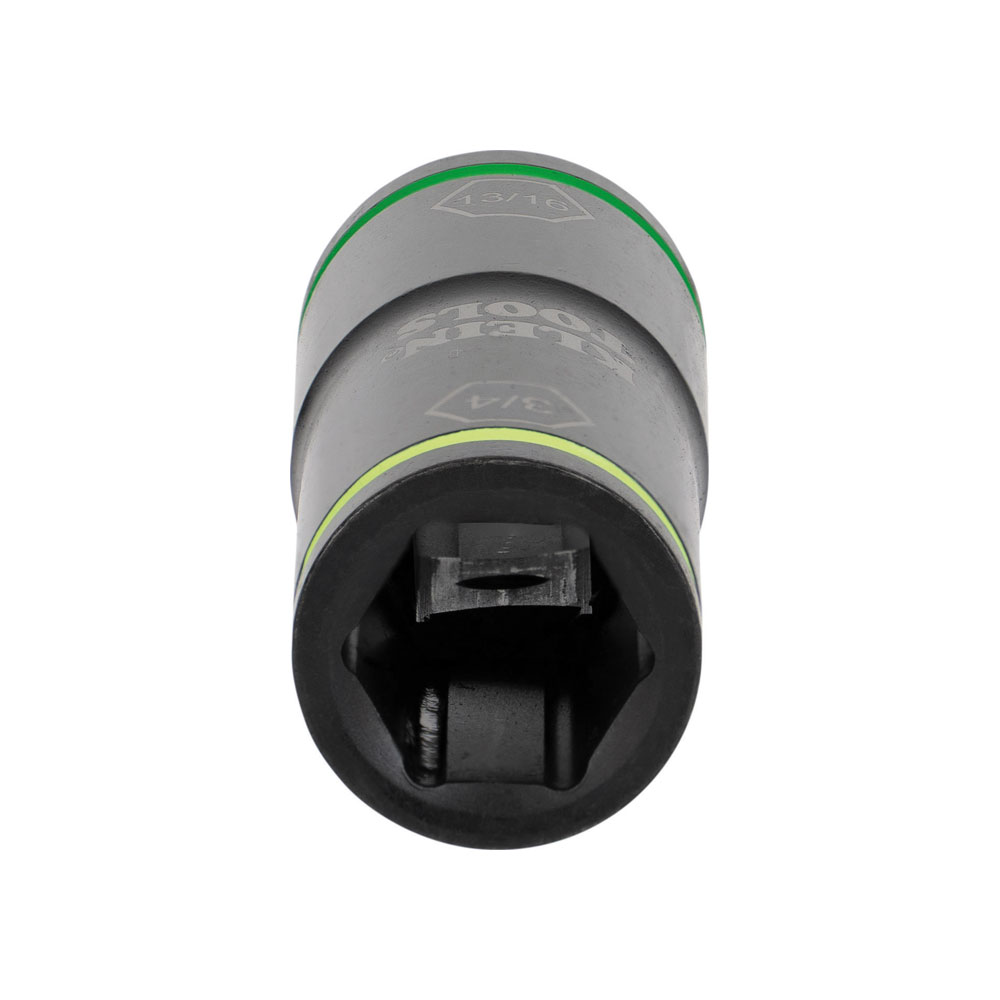 The Flip Impact Socket combines two sizes in one socket. The socket is designed for use with an impact driver including Klein's Compact Impact Wrench (Cat. Nos. BAT20CW, BAT20CW1). Easy-to-use flip feature allows for quick changes between sizes and reduces the number of tools in the tool bag.