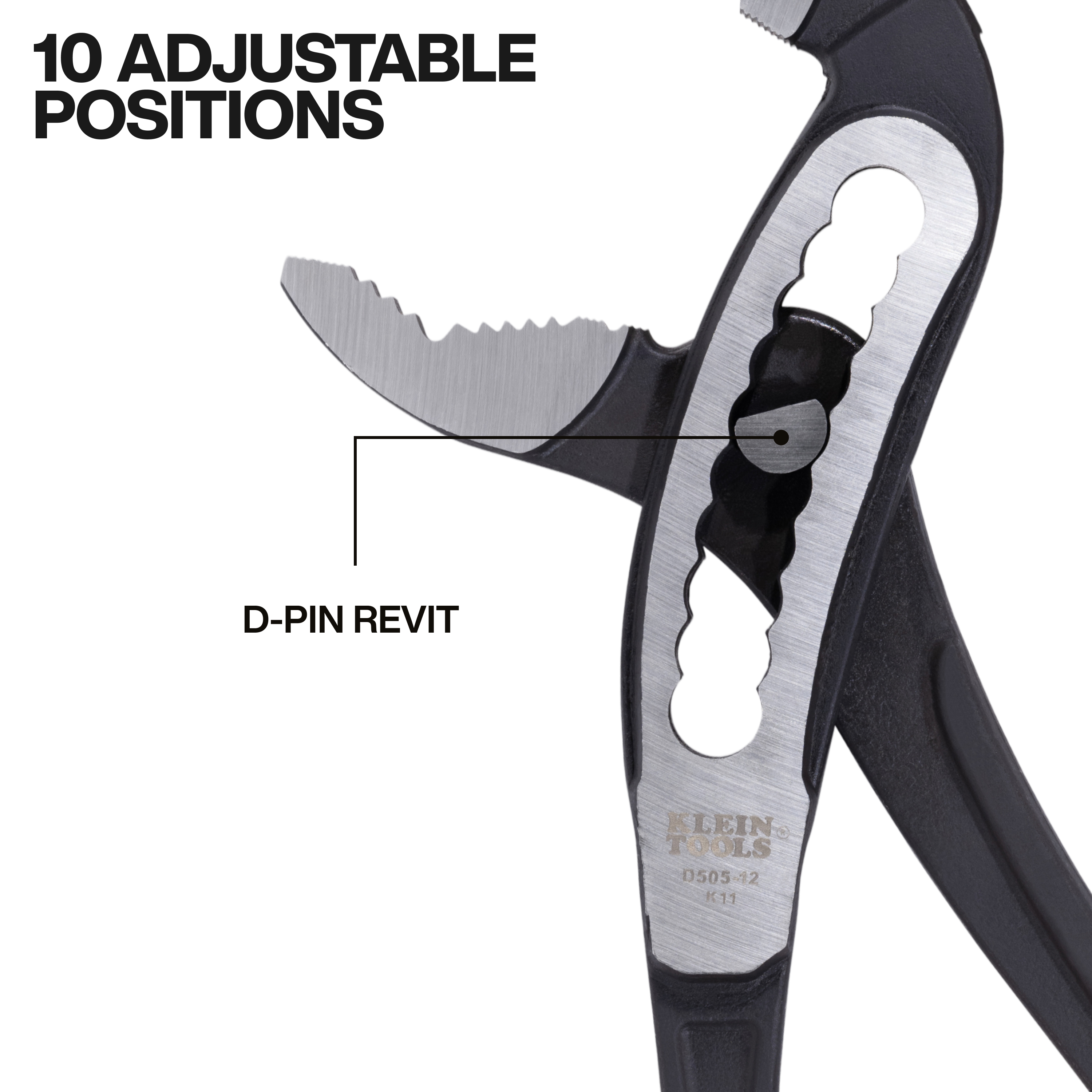 Klein Classic Klaw™ Pump Pliers feature a unique curved jaw that provides multiple points of contact for maximum torque and grip. The gripping surface of the jaw is also lined with especially hardened teeth that reduce wear and provide positive grip. Durable construction makes these Classic style pump pliers tough enough to handle the job.