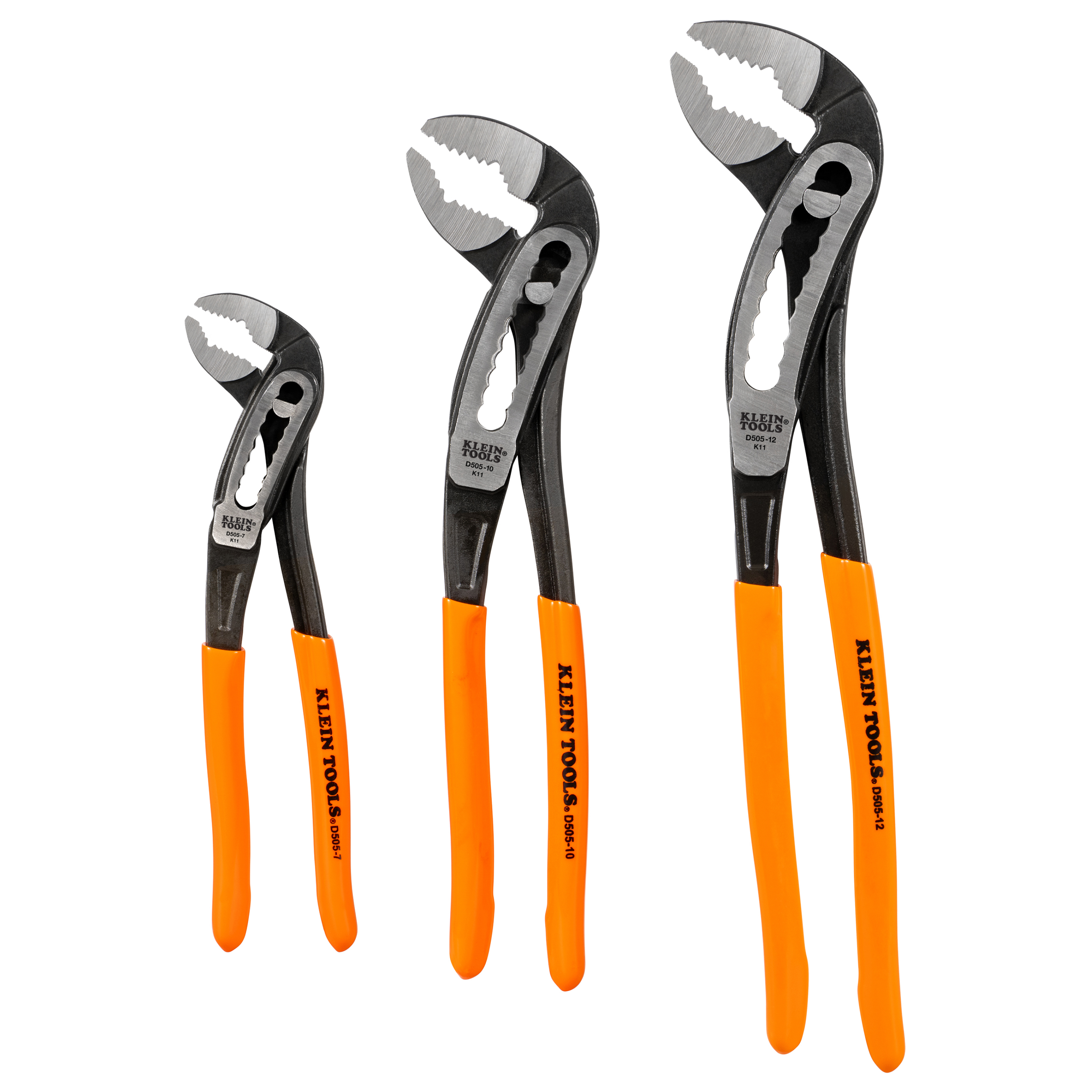 • Pliers Set includes 7-Inch Pump Pliers (Cat. No. D5057), 10-Inch Pump Pliers (Cat. No. D50510), and 12-Inch Pump Pliers (Cat. No. D50512)