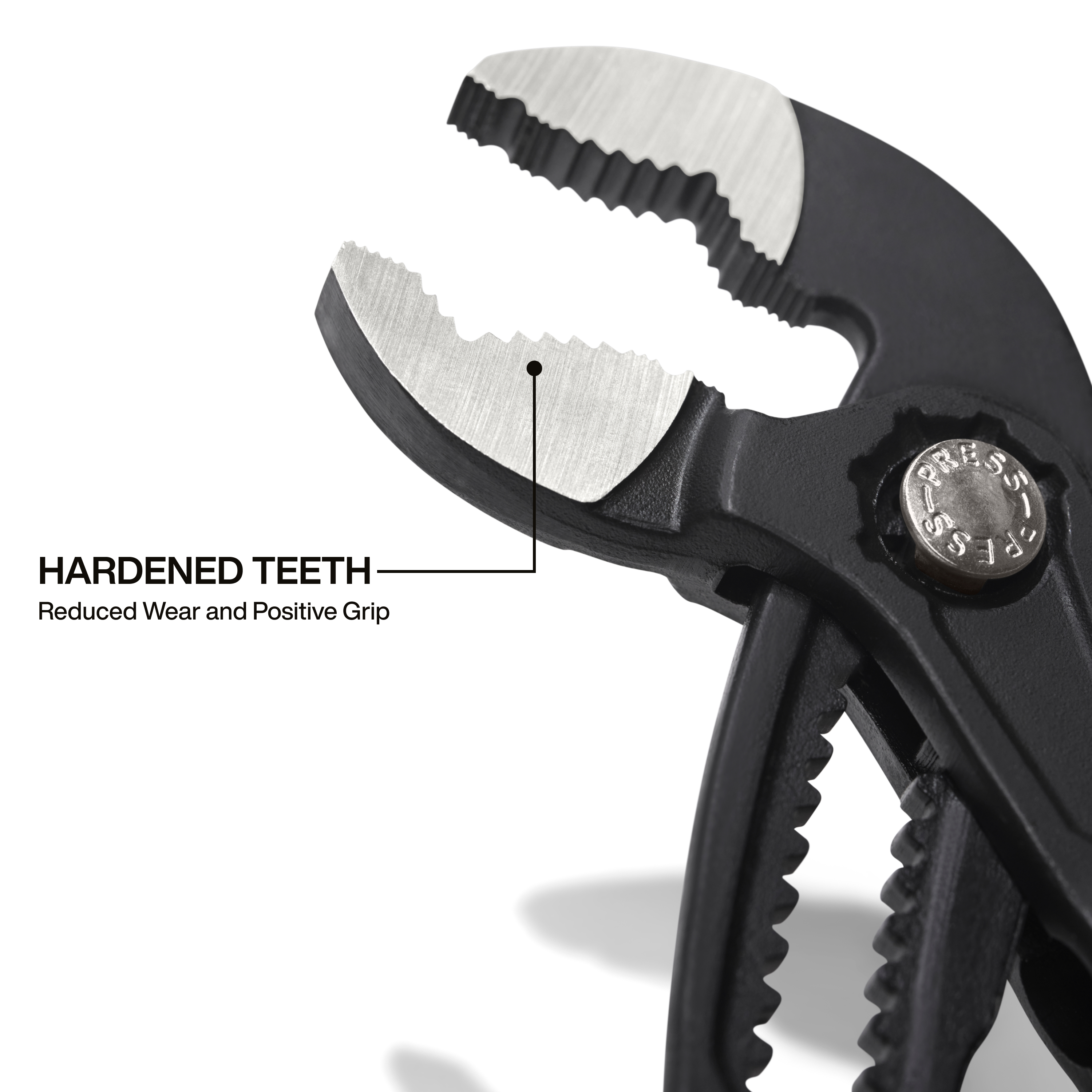 - Gripping surface with hardened teeth for reduced wear and positive grip