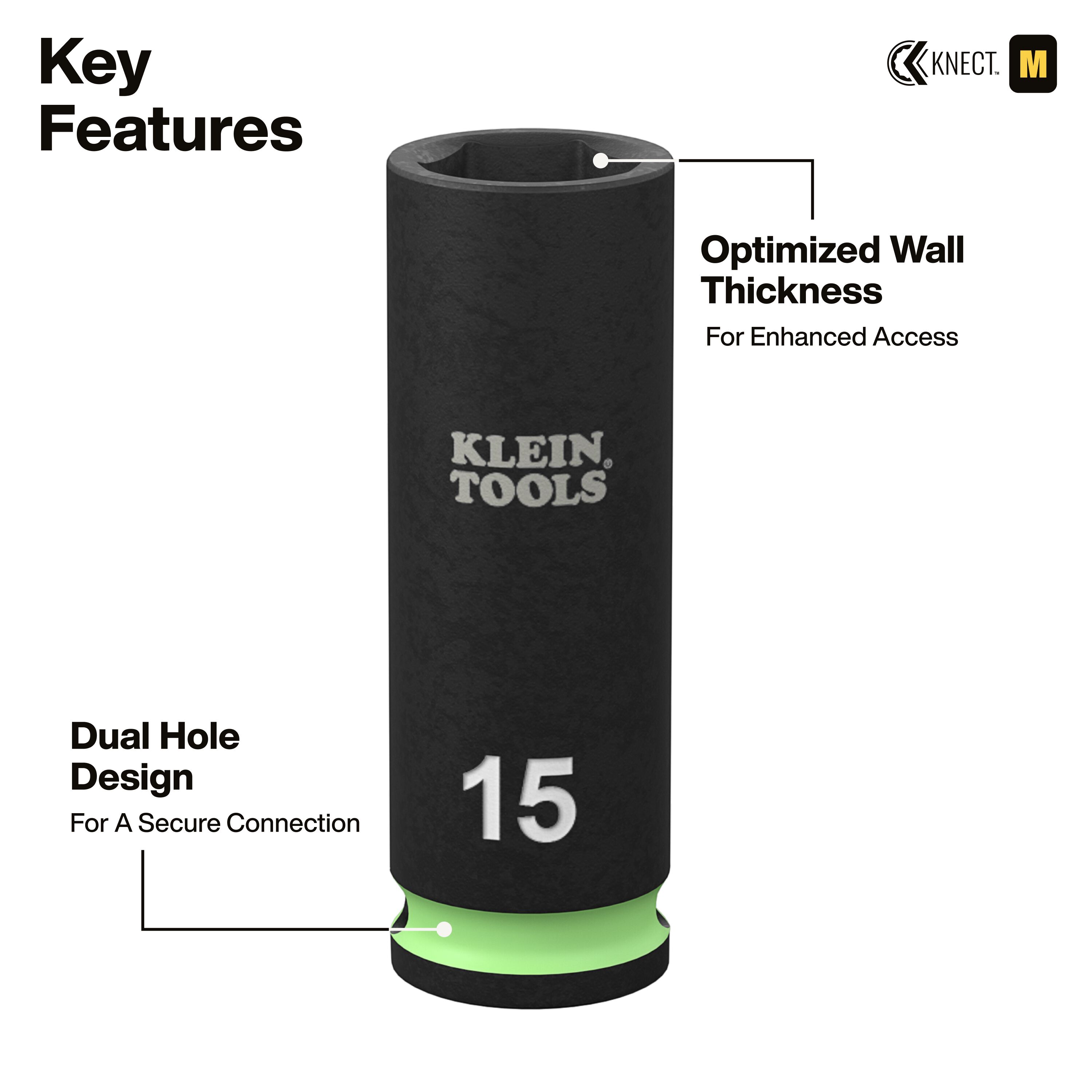 Color-Coded Painted Band on Socket, Stamped Size with Paint Infill, KNECT™ Adapter