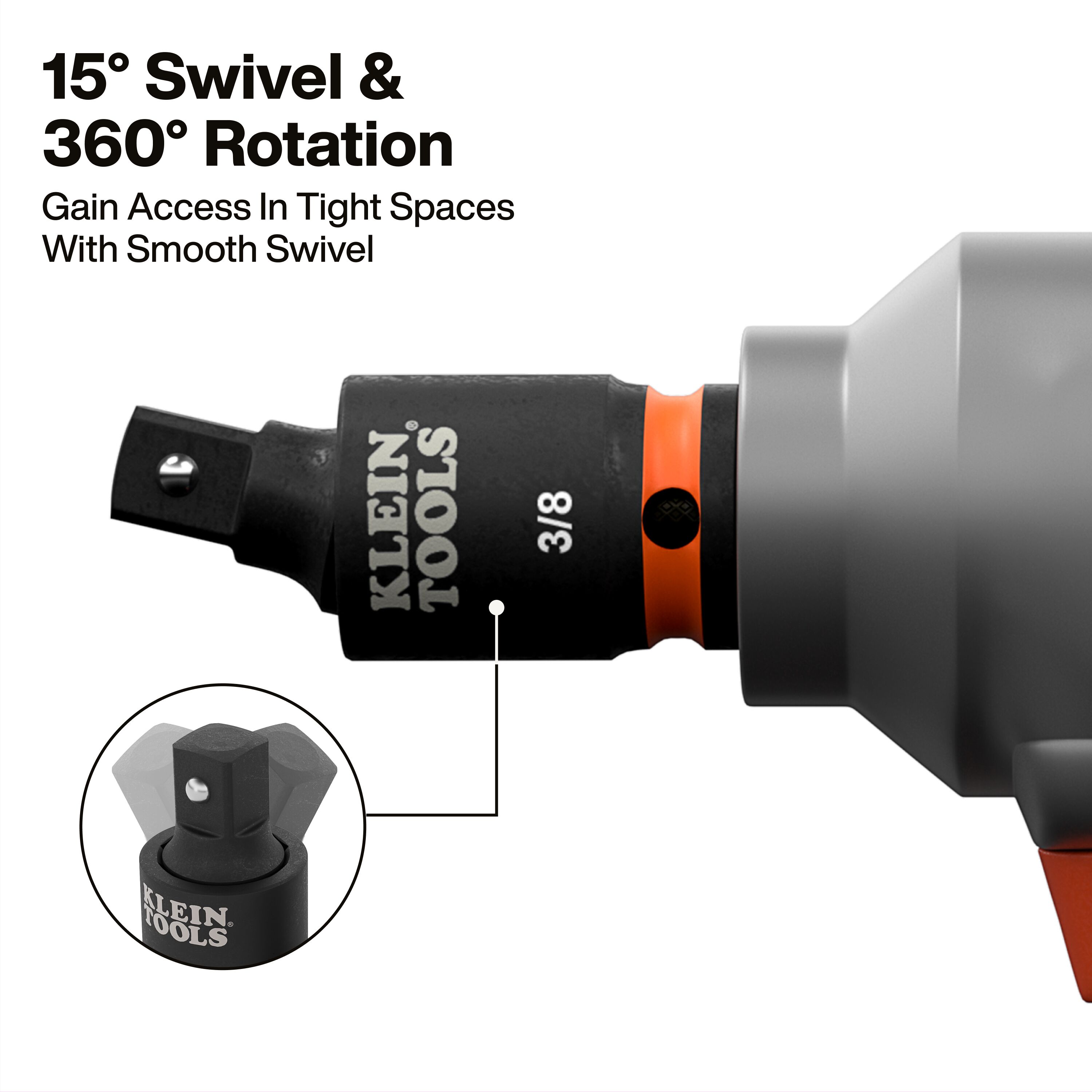 - Swivel adapter locks in place for fixed driving and delivers flexibility to access fasteners in confined, hard-to-reach spaces