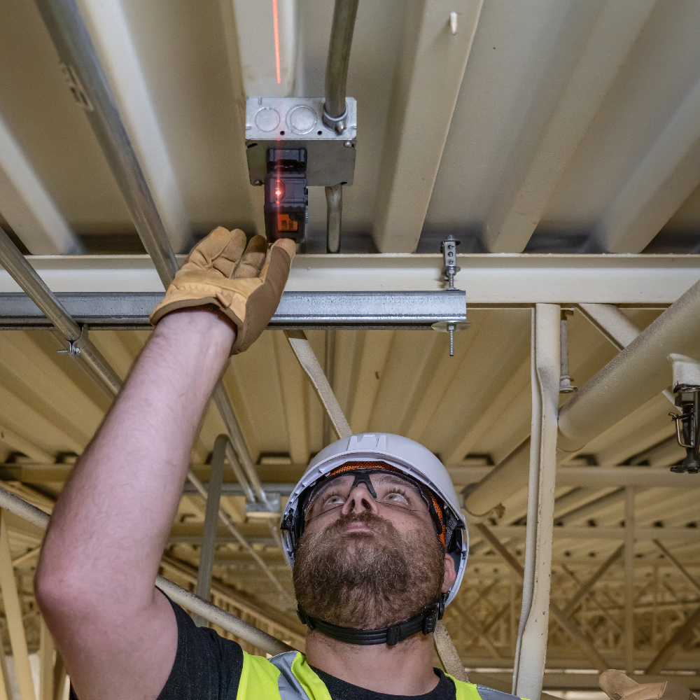 - 3-axis bubble vials illuminate for enhanced viewing and leveling