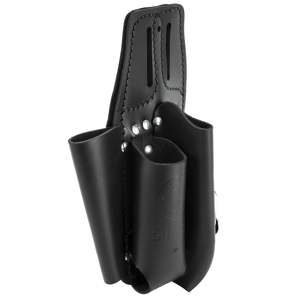 This Klein Tools 4-Tool Holder features pockets designed to accommodate pliers, folding rule, screwdriver and a wrench. Designed to attach to belts up to 2-Inch (5.1 cm) wide, this tool pouch offers convenient access and storage. Made of black leather riveted construction to stand up to the harshest job sites.