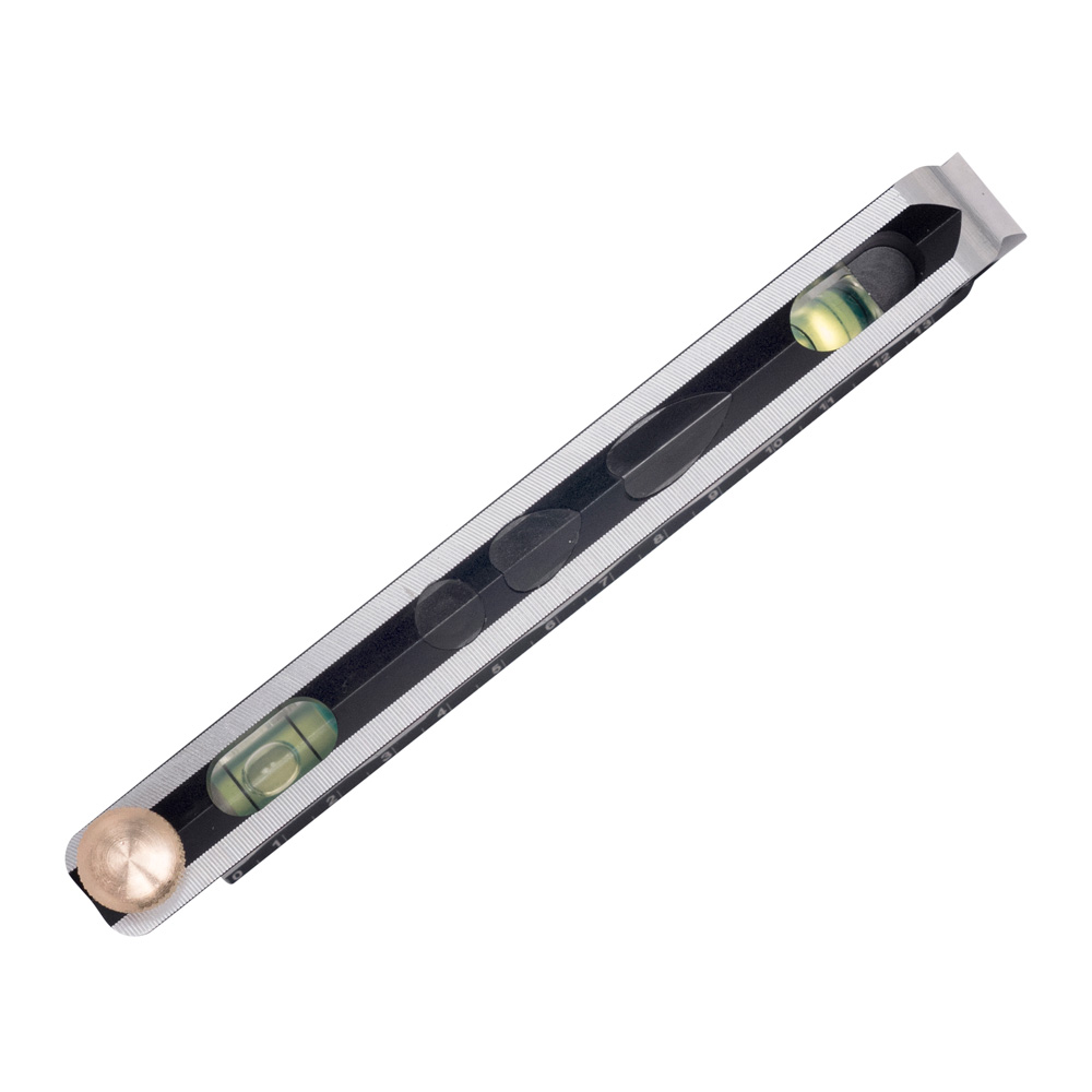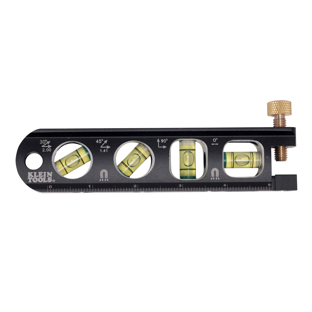 Klein Tools’ 6-Inch Electrician’s Level provides quick, accurate measurements. High impact acrylic vials and laser-etched markings make measurements easy to identify. The strong, die cast aluminum design features a convenient built-in hang hole for storage.