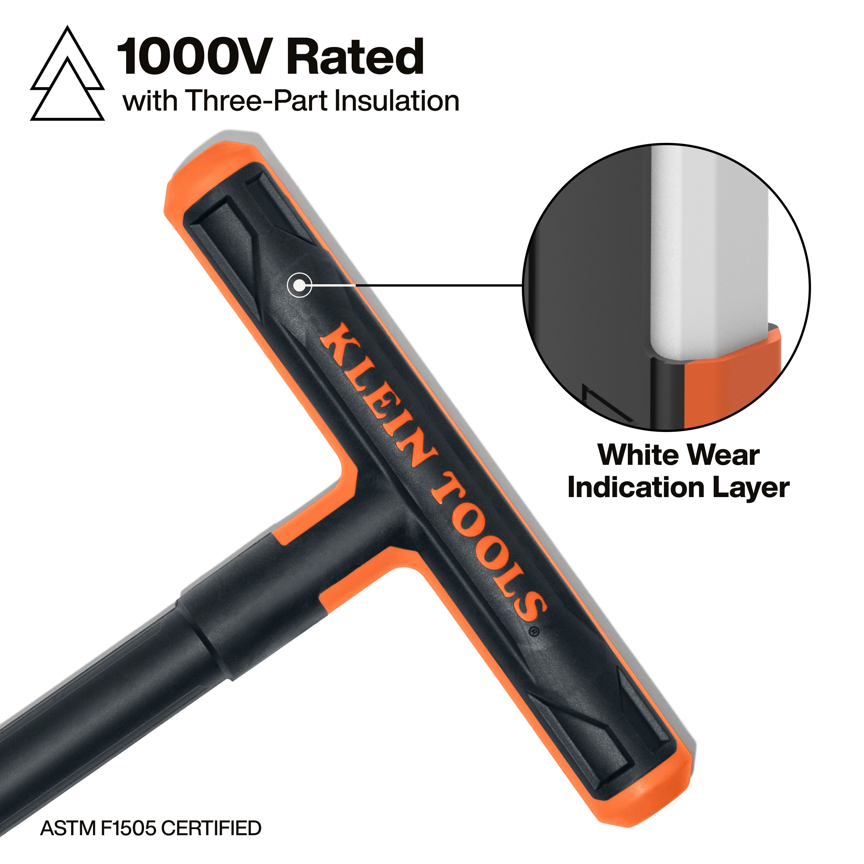 - ASTM F1505 certified three-part insulation is built for live-line work up to 1000V with a visible wear indicator for added protection