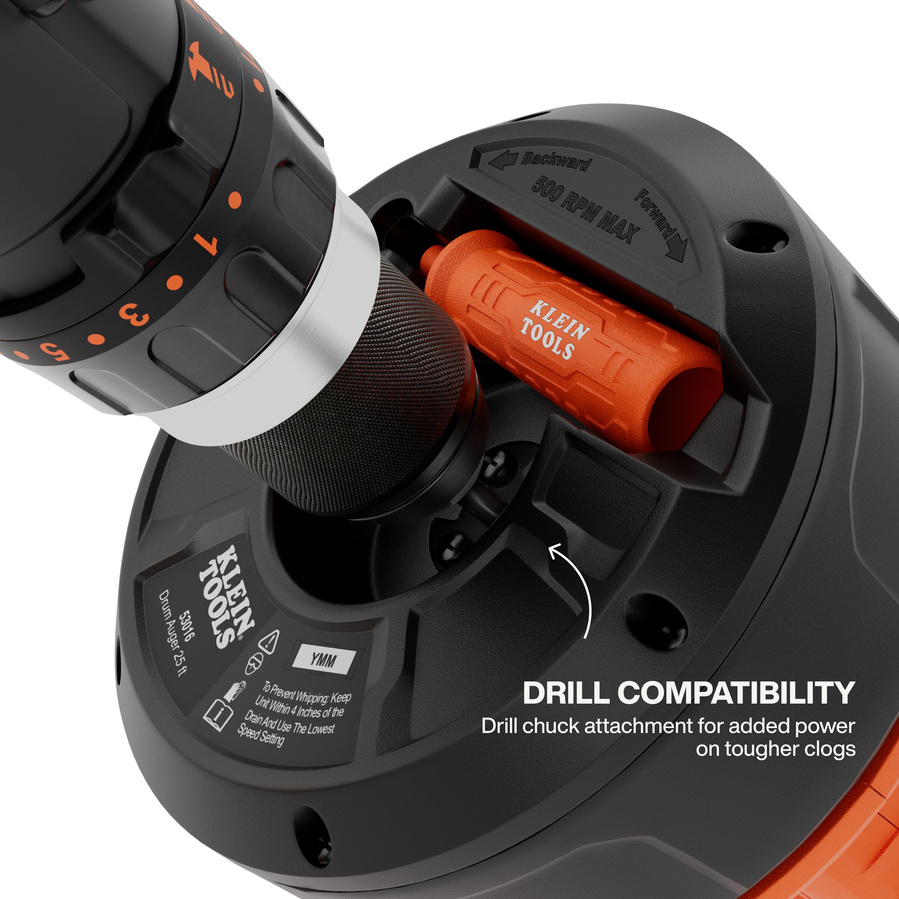 • Hybrid operation enables manual control for precise tasks and drill chuck compatibility for added power on tougher clogs