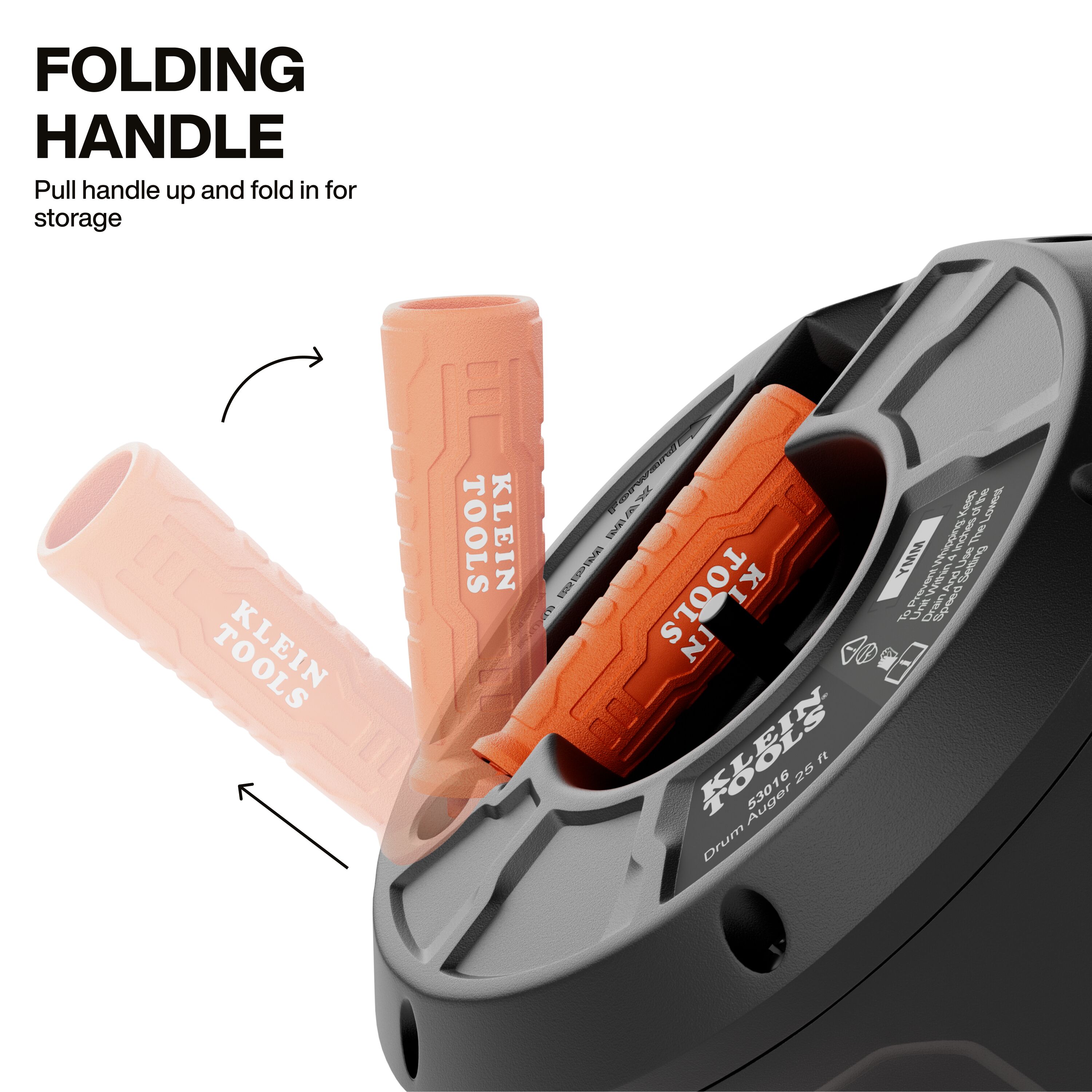 • Dual-locking folding handle stays secure during manual operation and folds into drum for drill clearance and storage