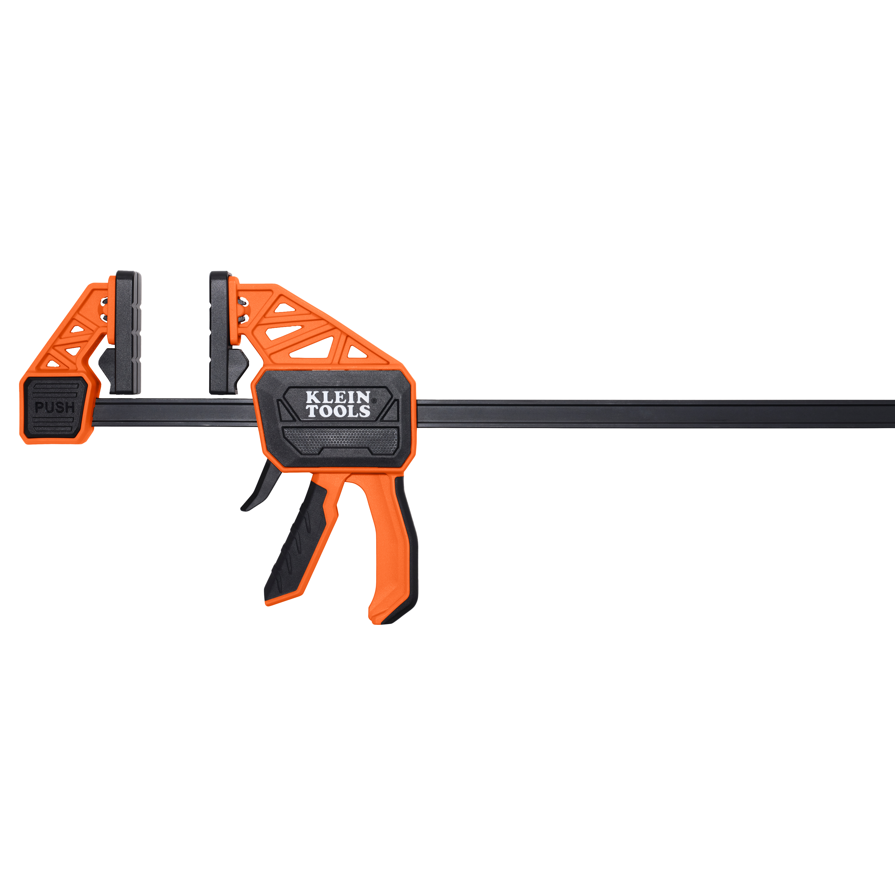 Klein Tools Speed-Klamp 24-Inch clamp delivers quick one-handed operation with 300-Pound clamping force. Pads pivot and detach to accommodate various surfaces, ensuring a secure grip. Dual-purpose functionality converts the clamp into a spreader for expanded use across woodworking and metalworking applications.