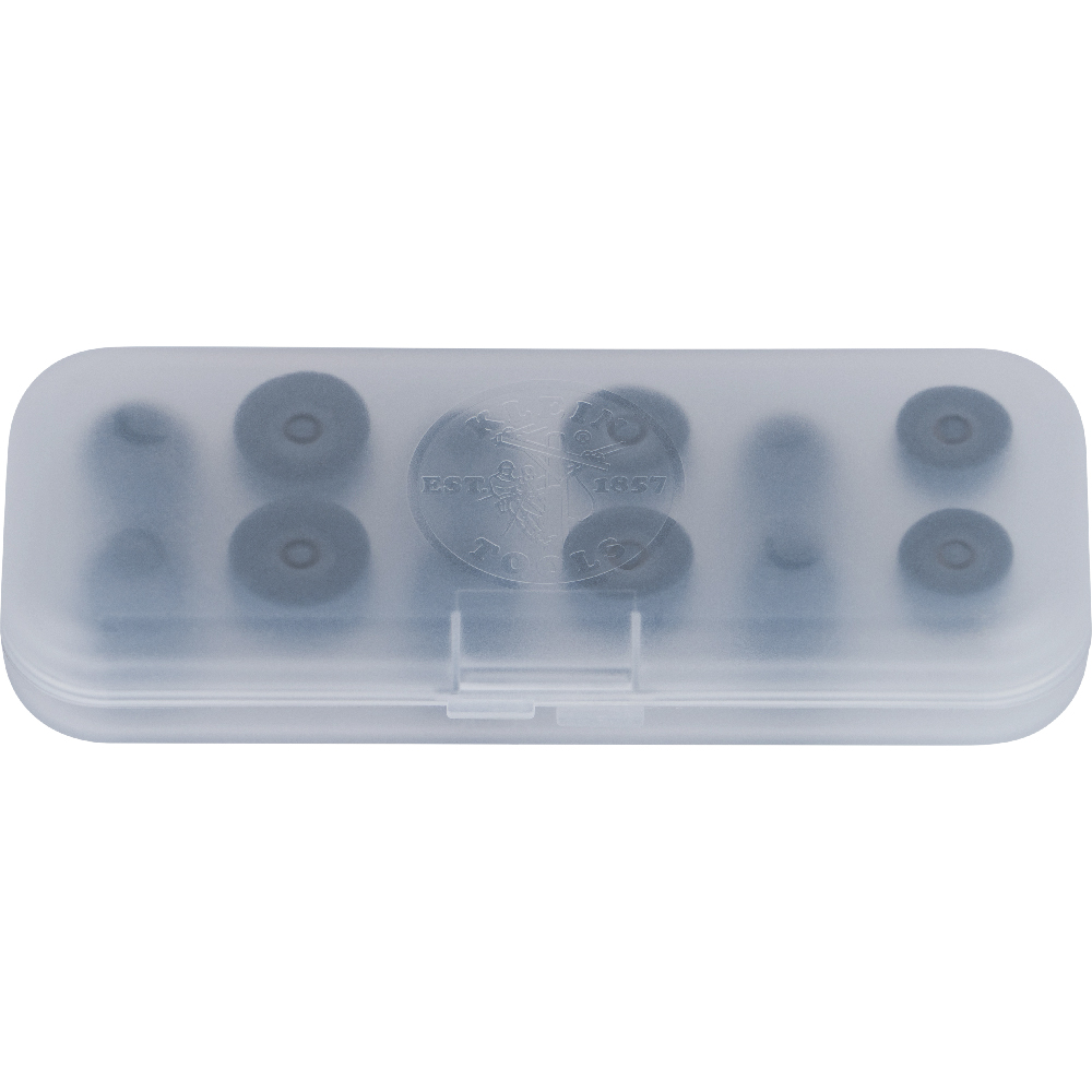 Klein Tools Replacement Ear Tips for Cat. No. AESEB1S Situational Awareness Bluetooth® Earbuds includes both memory-foam and silicone tips to replace any worn out, damaged, or lost tips. The memory-foam tips reduce exposure to damaging sounds up to 26dB while sealing the ear canal for an enhanced audio experience. The silicone tips provide comfort off the jobsite for leisure activities. There are 6 pairs of replacement tips accompanied by a case to store and organize the tips.