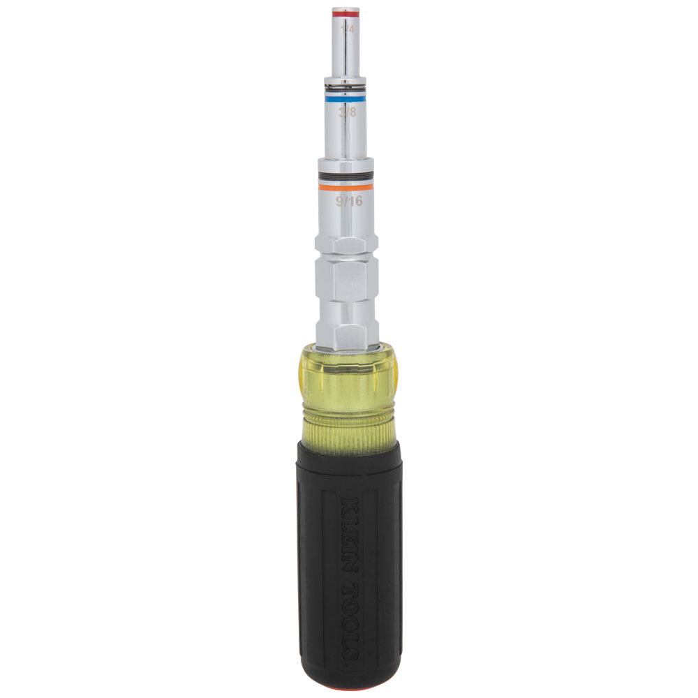 Klein's 9-in-1 Pass Through Multi-Nut Driver features fully pass through drivers for driving nuts on threaded rod and prevents bottoming out. Nine SAE sizes in one tool with color coded ends make it convenient to identify the size needed for the job. All sizes allow for easy, one-handed driving. Increase your productivity and lighten your load with this multi-nut driver.