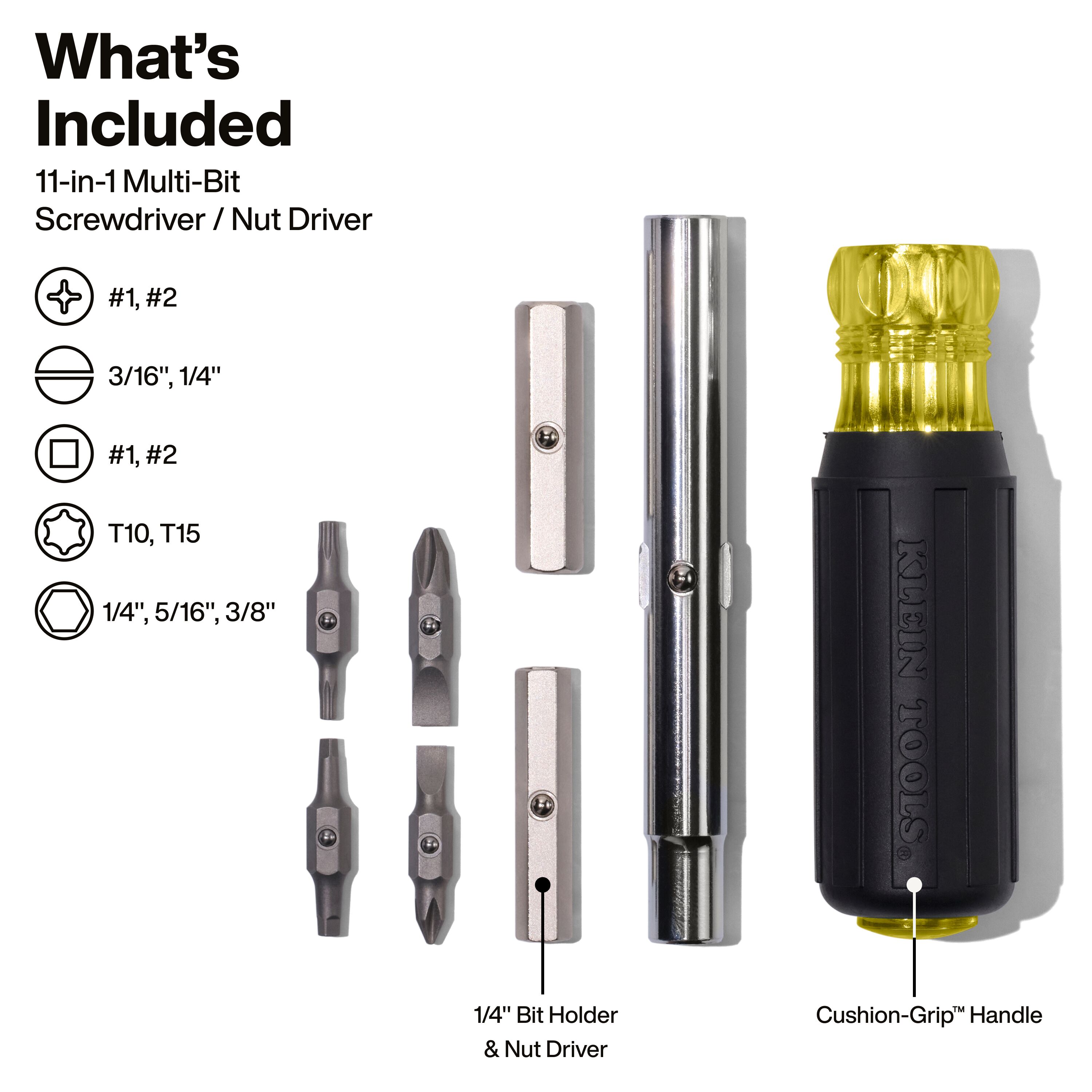 Multi-Bit Screwdriver/Nut Driver, 11-in-1, Ph, Sl, Sq, TORX® Bits