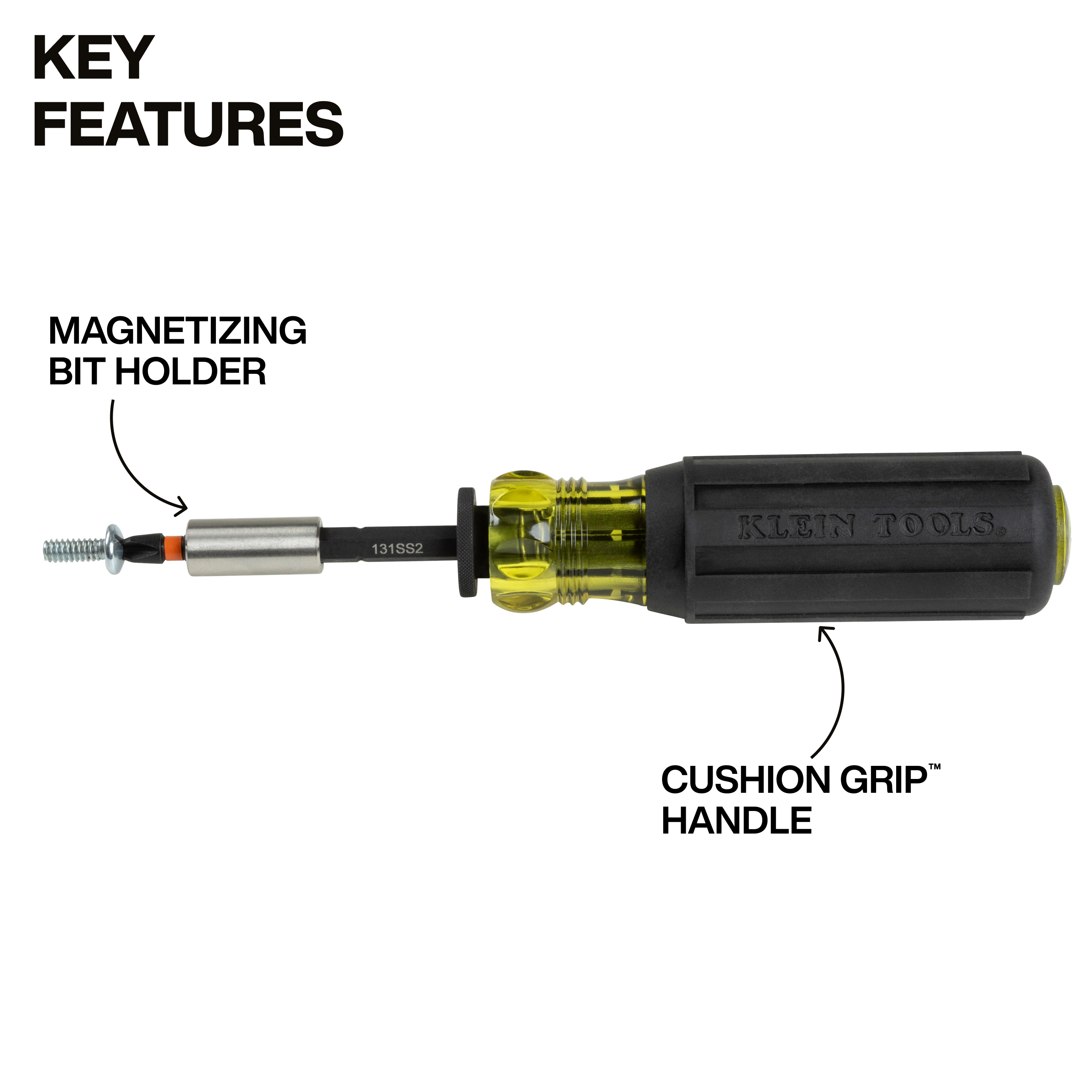 - Powerful magnet within the screwdriver barrel enhances bit retention and securely holds fasteners