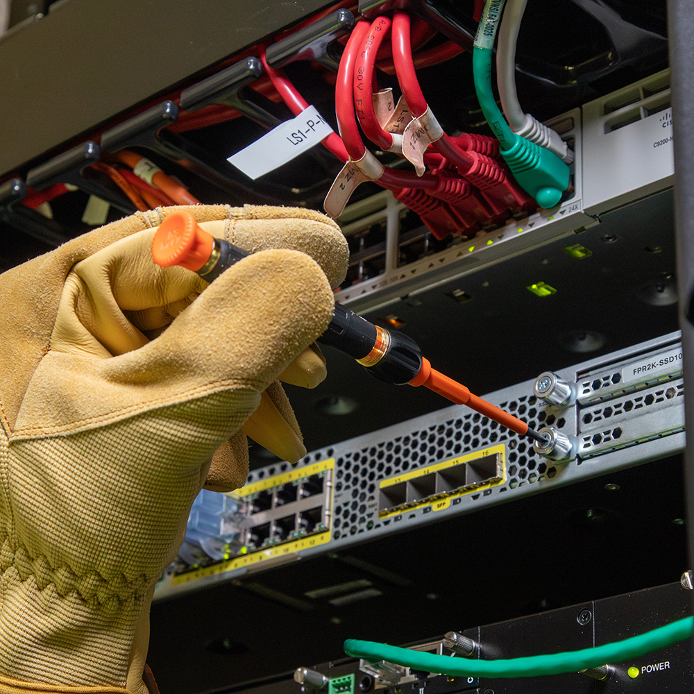 • Layer of orange impact and flame-resistant insulation protects from energized sources