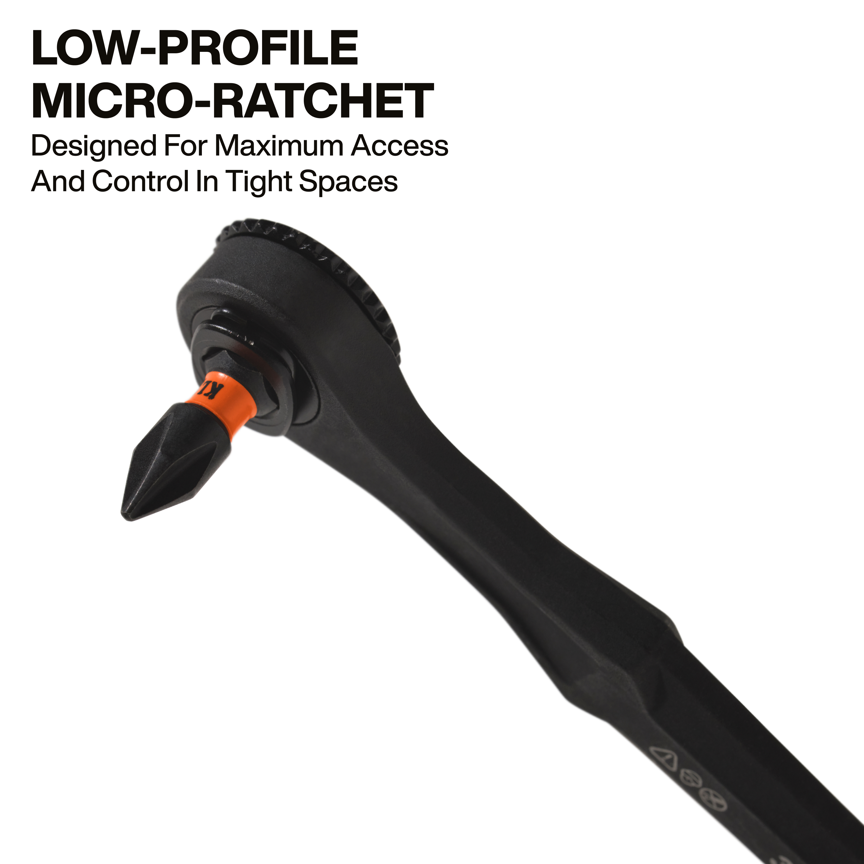 • Low-profile micro-ratchet to access tight spaces and provide additional torque